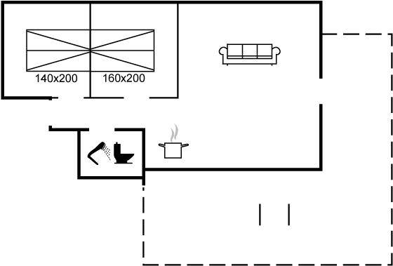SchlafverhältnisseDie Schlafplätze verteilen sich auf 2 Schlafräume. 4 Schlafplätze in Doppelbetten.
