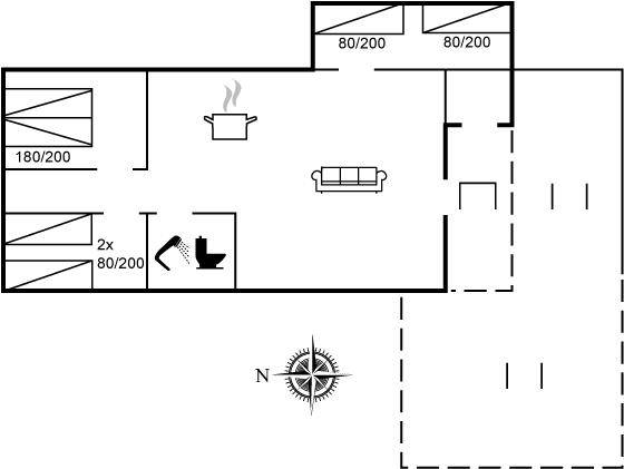 DraußenDie Ferienunterkunft liegt auf einem 850 m² großen Naturgrundstück. Die Entfernung zum Meer beträgt 31000 m.Die Entfernung zum Wattenmeer beträgt 18000 m. Die nächste Einkaufsmöglichkeit liegt 400 m entfernt. In einem Abstand von 1000 m gibt es einen Golfplatz. Es steht ein 50 m² Terrassenareal zur Verfügung. Es gibt einen vollständig isolierten Abstell-/Geräteraum, der über einen überdachten Durchgang zugänglich ist. Es stehen 2 Grills zur Verfügung. Parkplatz auf dem Grundstück.