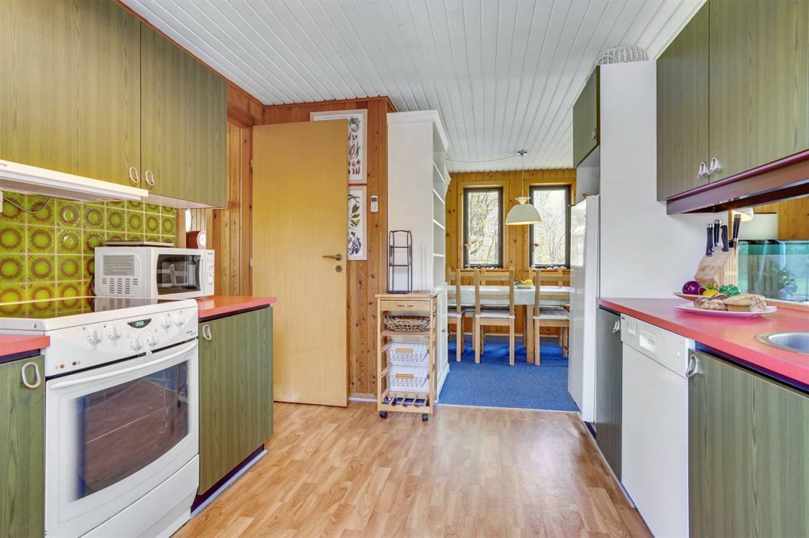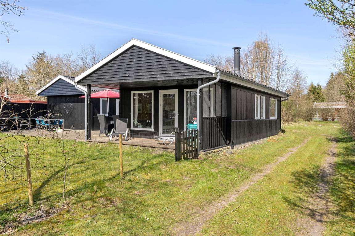 Älteres schönes und gepflegtes Sommerhaus in herrlicher Ferienhausumgebung. In Verbindung mit der Terrasse gibt es ein Anneks, der mit 2 Zimmern und Bad ausgestattet ist. Das andere Schlafzimmer und Bad befinden sich im Haupthaus.