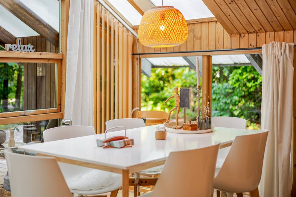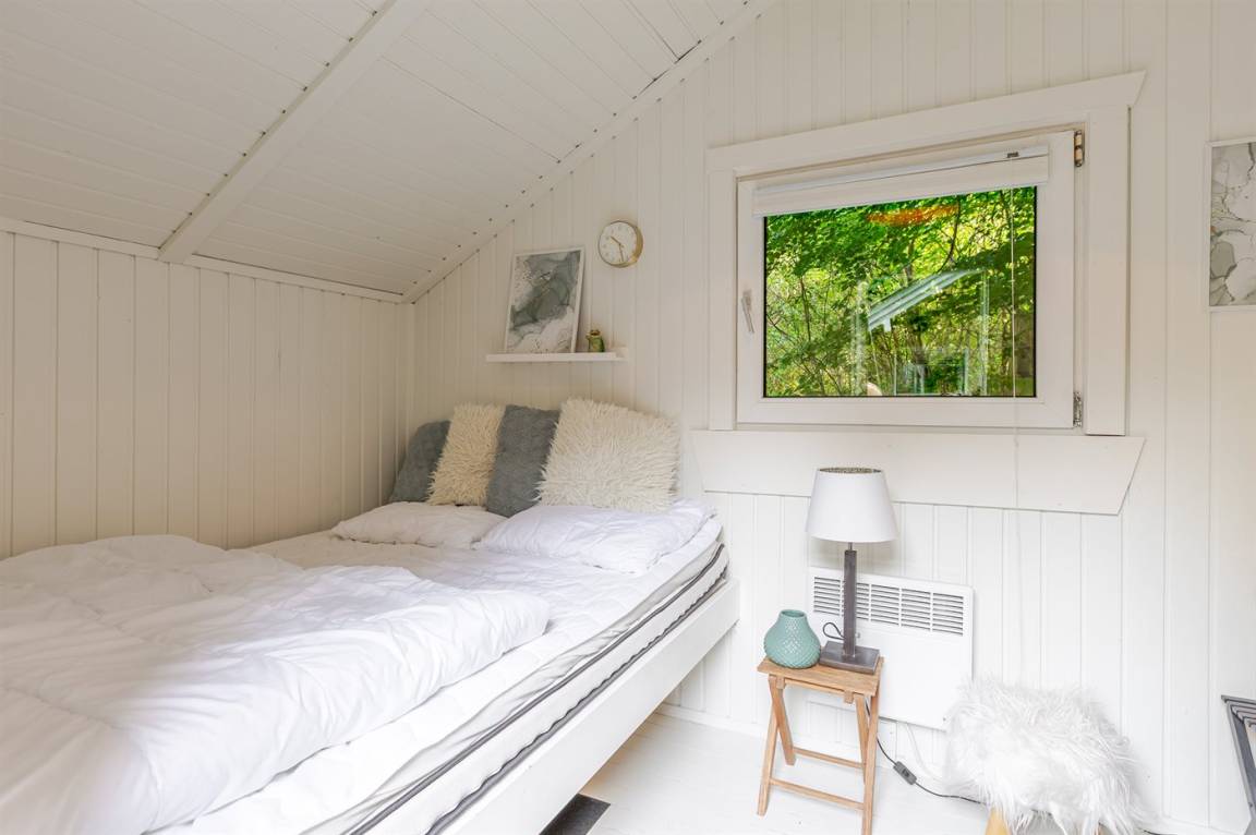 Gemütliches kleines Ferienhaus auf einem ungestörten Grundstück in der Nähe eines Angelsees. Zum Haus gehört zu Gästehaus, in dem sich 2 der Schlafplätze befinden.