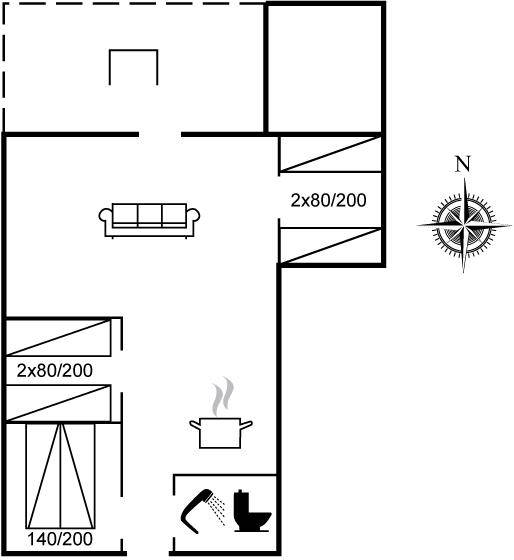 SchlafverhältnisseDie Schlafplätze verteilen sich auf 3 Schlafräume. 2 Schlafplätze in einem Doppelbett. 4 Schlafplätze in Einzelbetten. Ferner steht ein Kinderbett zur Verfügung.