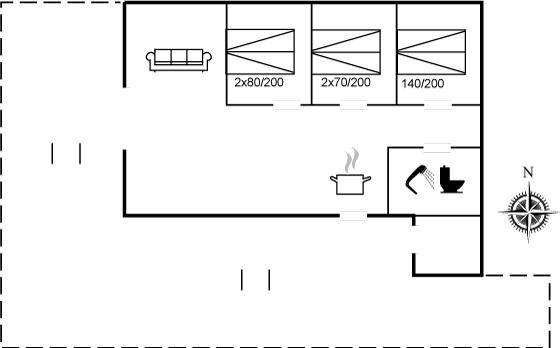 Das Haus liegt auf einem 875 m² großen Naturgrundstück und verfügt über eine große Holzterrasse, die nach Süden und Westen ausgerichtet ist. Im Garten findest du eine Windschutzhütte sowie eine Feuerschale mit einem großen Rost, auf dem du dein Essen oder Stockbrot zubereiten kannst. Außerdem steht ein Grill zur Verfügung.