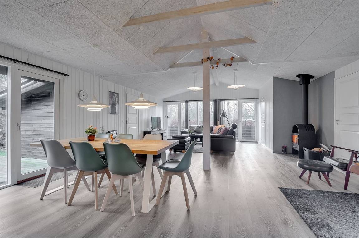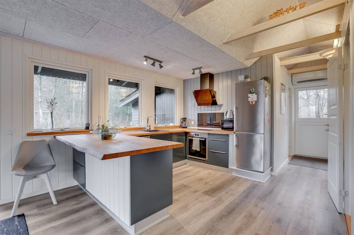 EinrichtungDas Ferienhaus eignet sich für 8 Personen sowie 1 Kleinkind bis zu 3 Jahren. Die Ferienunterkunft hat eine Wohnfläche von 118 m² und wurde 1977 gebaut. 2020 wurde die Ferienunterkunft renoviert. Haustiere dürfen nicht mitgebracht werden. Die Ferienunterkunft ist mit einer energiefreundlichen Luft-Luft-Wärmepumpe ausgestattet. Die Ferienunterkunft ist mit Waschmaschine ausgestattet. Wäschetrockner. Tiefkühlmöglichkeit mit 60 Liter Nutzinhalt. Es gibt außerdem einen Kaminofen. Für die jüngsten Feriengäste ist 1 Kinderhochstuhl vorhanden.