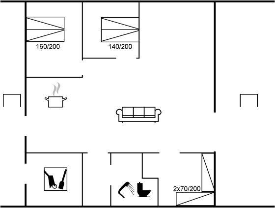 EinrichtungDas Ferienhaus eignet sich für 6 Personen. Die Ferienunterkunft hat eine Wohnfläche von 77 m² und wurde 1982 gebaut. Haustiere dürfen nicht mitgebracht werden. Die Ferienunterkunft ist mit Waschmaschine ausgestattet. Tiefkühlmöglichkeit mit 6 Liter Nutzinhalt. Es gibt außerdem einen Kaminofen.