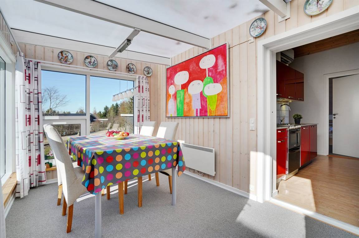 Dieses nette Ferienhaus liegt auf einem schönen, ungestörten Grundstück - in einem gemütlichen Ferienhausgebiet, das von einer unglaublich schönen Natur und einer Unzahl von Aktivitätsmöglichkeiten umgeben ist. Zum Haus gehört ein heller Wintergarten und eine kleine Terrasse.