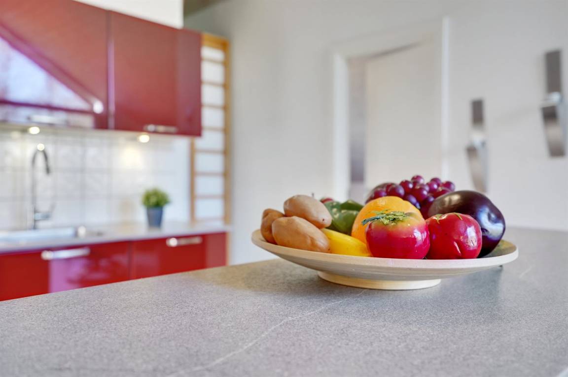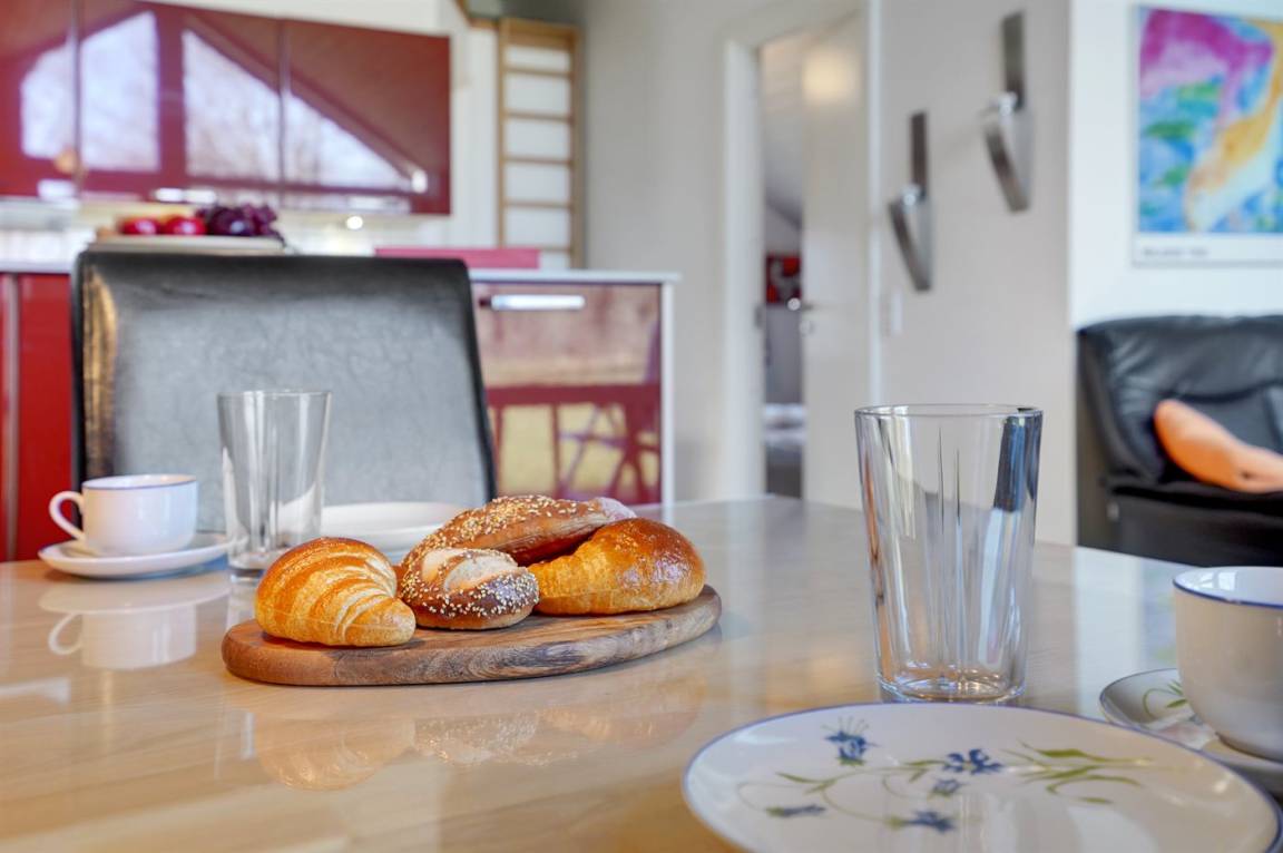 KücheDie Küche ist mit Kühlschrank ausgestattet. Außerdem gibt es 4 Keramik-Kochfelder, Umluftofen, Mikrowelle.