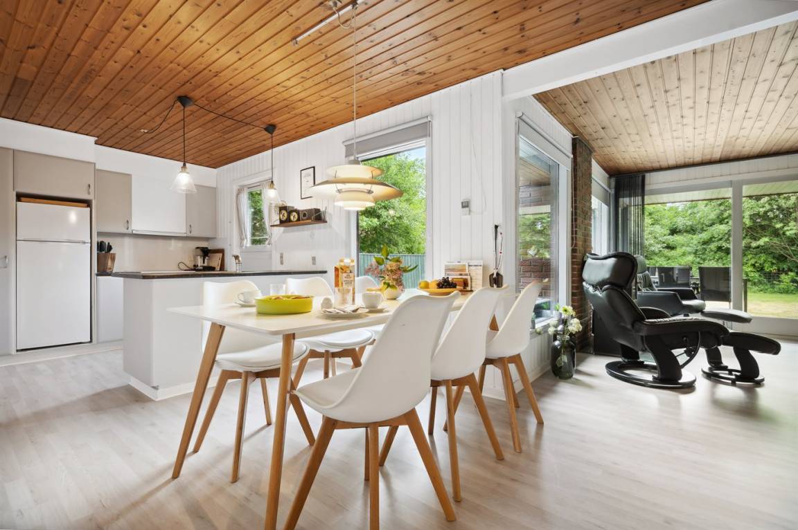 Das Ferienhaus eignet sich für 6 Personen. Die Ferienunterkunft hat eine Wohnfläche von 77 m² und wurde 1978 gebaut. Es ist erlaubt 1 Haustier mitzubringen. In der Ferienunterkunft ist eine energiesparender Luft zu Luft Wärmepumpe installiert. Die Ferienunterkunft ist mit Waschmaschine ausgestattet. Tiefkühlmöglichkeit mit 20 Liter Nutzinhalt. Es gibt außerdem einen Kaminofen. Für die jüngsten Feriengäste ist 1 Kinderhochstuhl vorhanden.
