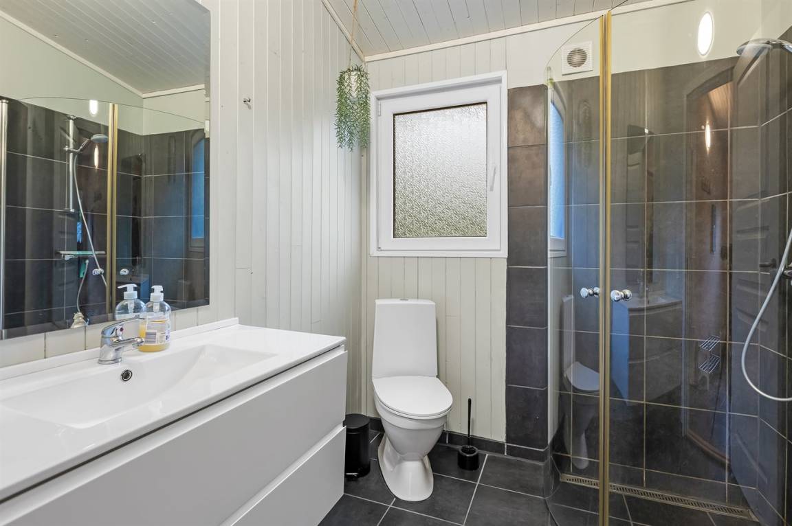 WC und BadEs gibt 1 Badezimmer mit Duschnische und 2 Toiletten, davon 1 Gästetoilette. Fußbodenheizung in 1 Badezimmer. Fußbodenheizung in der Gästetoilette.