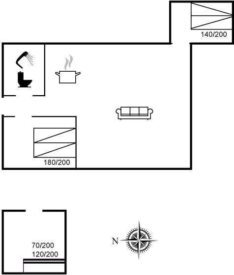 SchlafverhältnisseDie Schlafplätze verteilen sich auf 3 Schlafräume. 4 Schlafplätze in Doppelbetten. 2 Schlafplätze in einem Etagenbett. 2 von diesen Schlafplätzen befinden sich im Gästehaus.