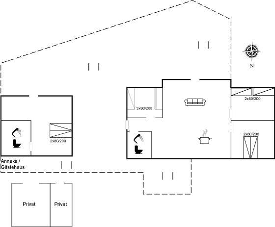 SchlafverhältnisseDie Schlafplätze verteilen sich auf 4 Schlafräume. 4 Schlafplätze in Doppelbetten. 3 Schlafplätze in Einzelbetten. 2 Schlafplätze in einem Etagenbett. 2 von diesen Schlafplätzen befinden sich im Gästehaus. Ferner steht ein Kinderbett zur Verfügung.