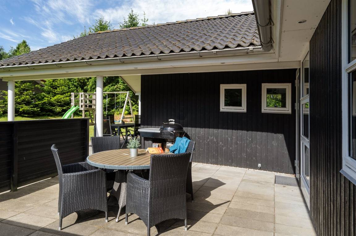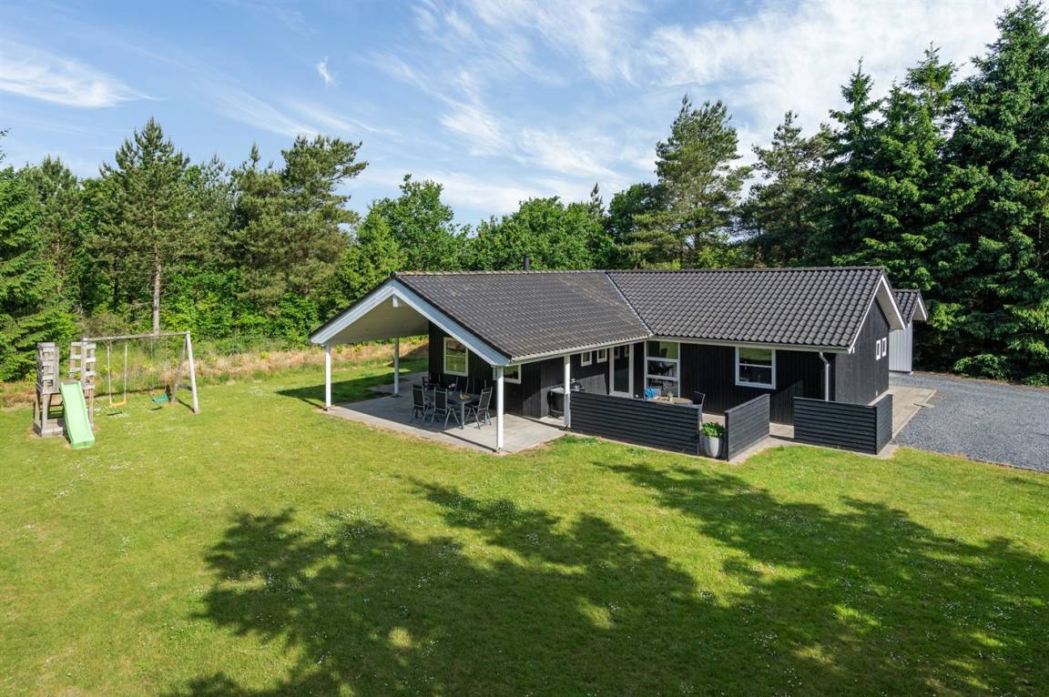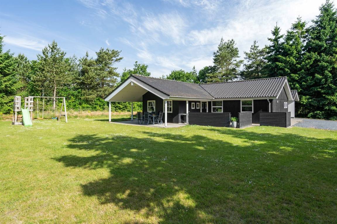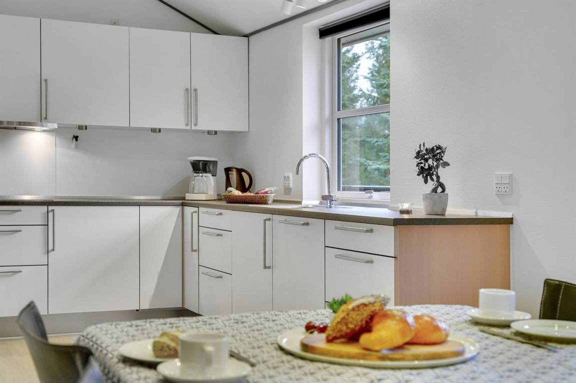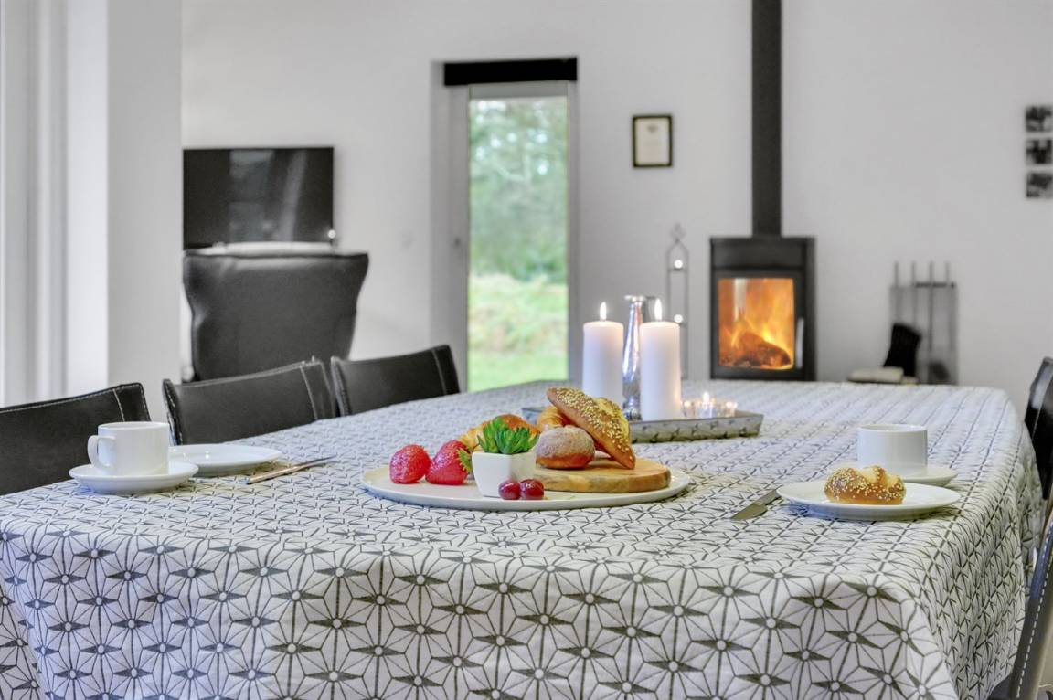 Ein gut ausgestattetes Luksus-Ferienhaus aus besten Materialien. Das Haus verfügt über 2 Badezimmer, von denen das eine einen großen Whirlpool und eine Sauna enthält. Das Wohnzimmer ist geschmackvoll eingerichtet - hier finden Sie Möbel von hoher Qualität und einen Kaminofen. All dies trägt dazu bei dem Haus das ganz richtige Ambiente zu verleihen. Zum Haus gehört eine teilweise überdachte Terrasse, auf der Sie die Sonne und die Natur in vollen Zügen genießen können.