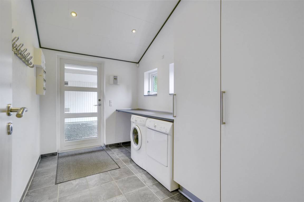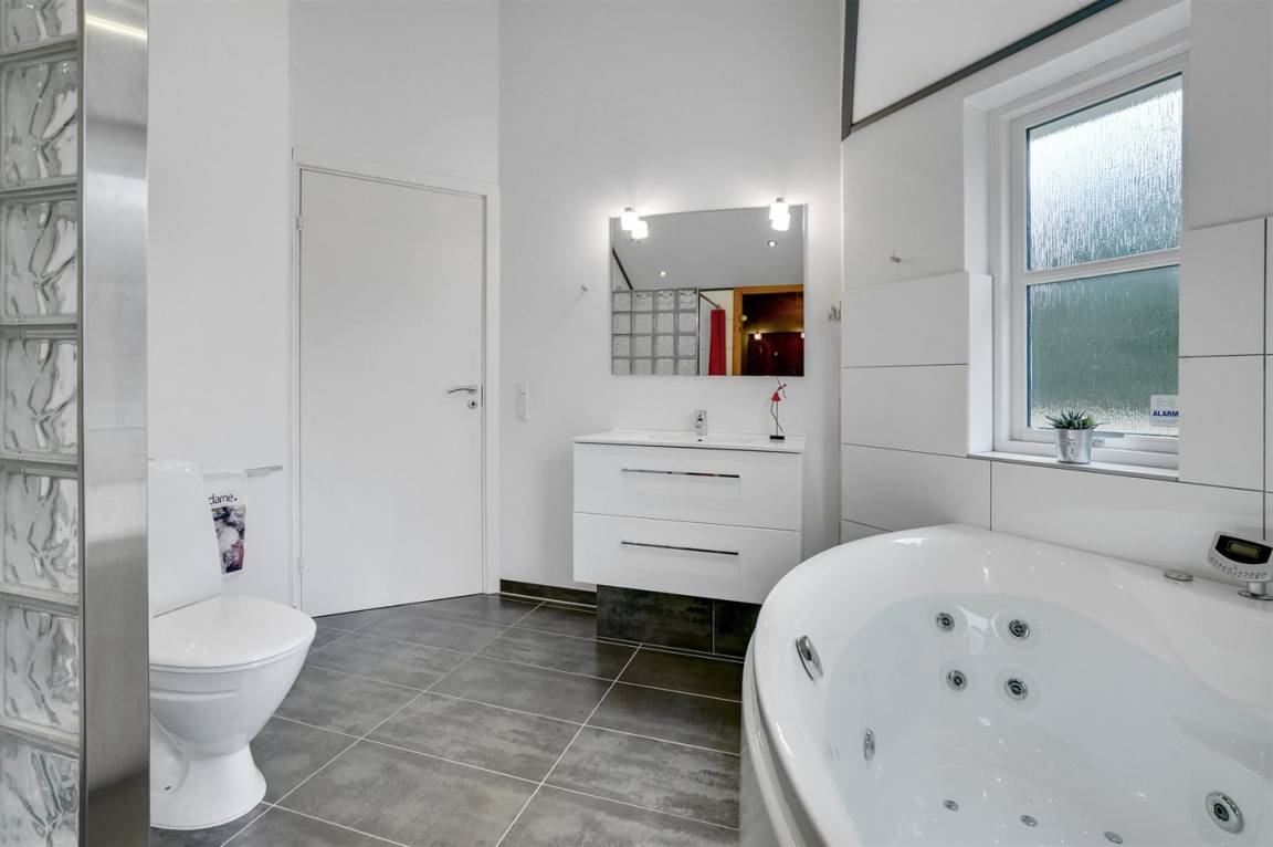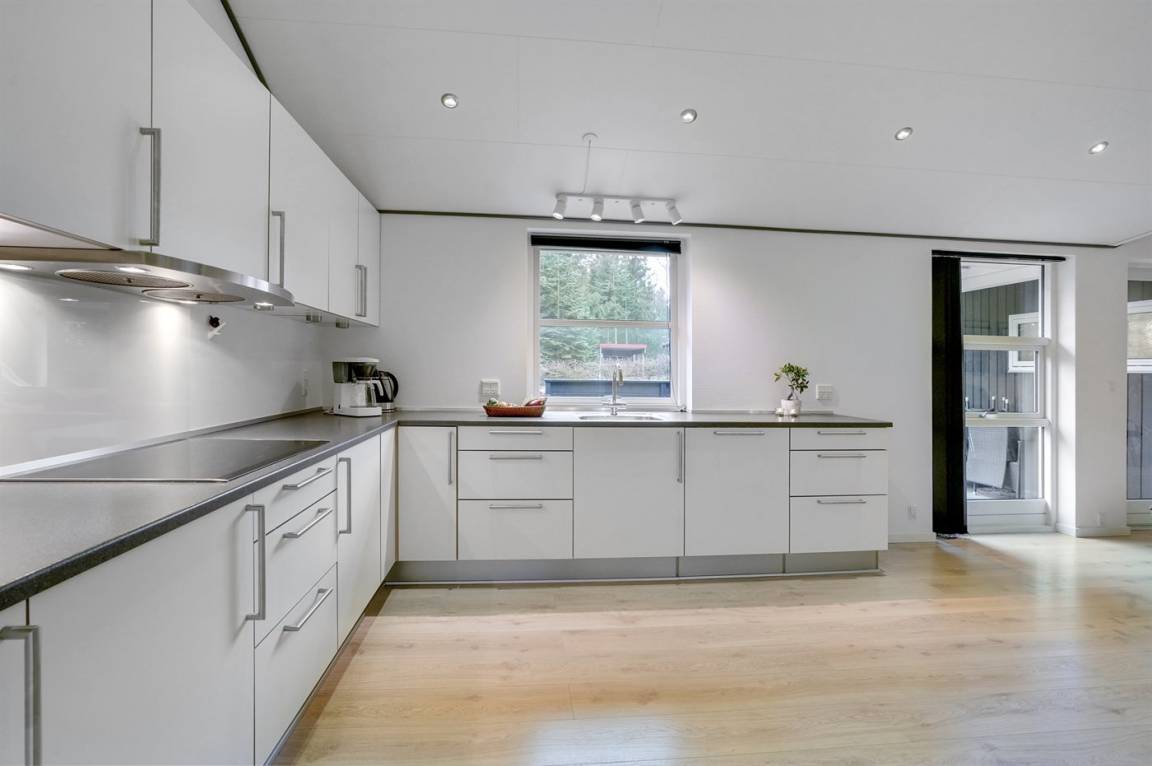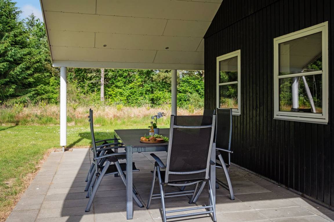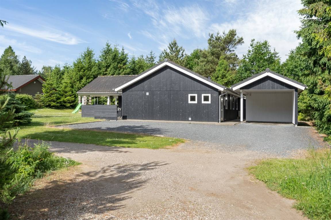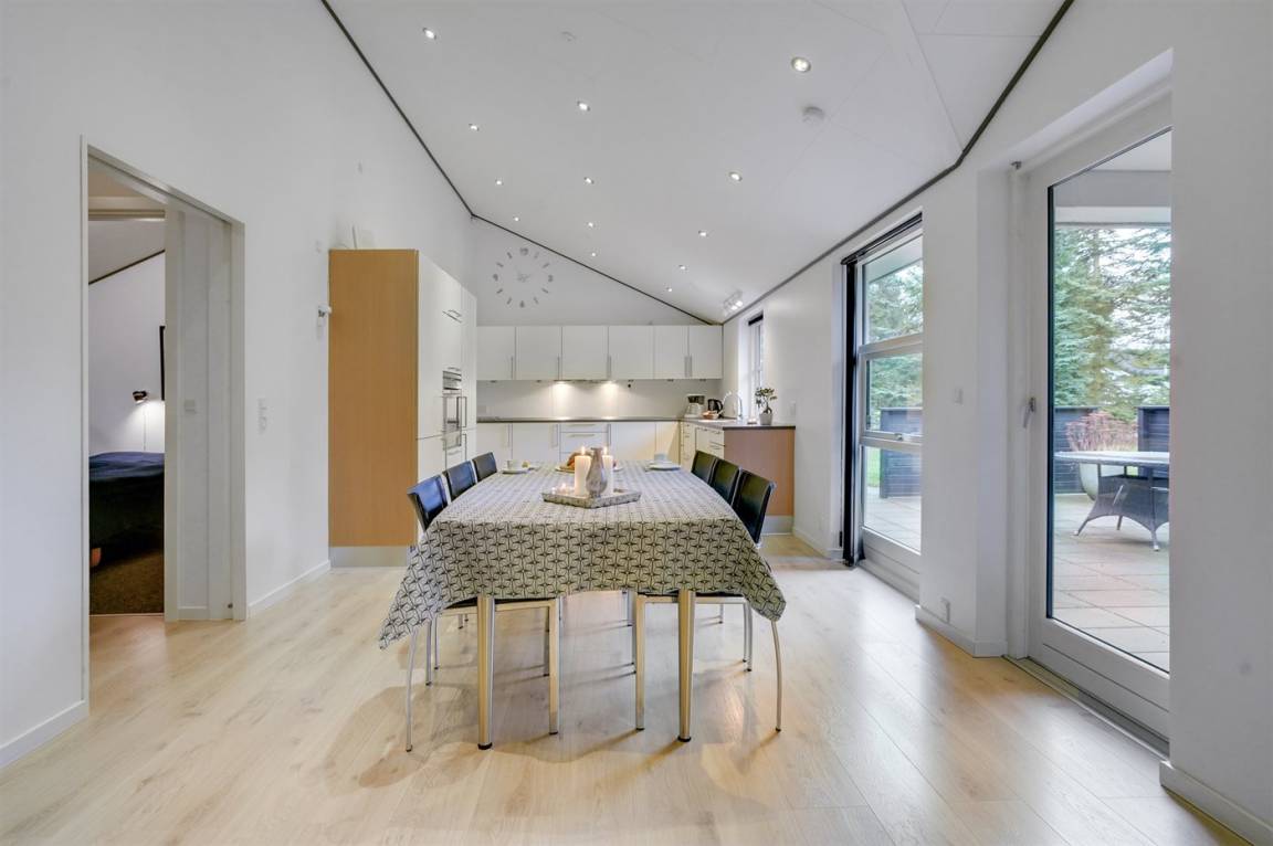 Ein gut ausgestattetes Luksus-Ferienhaus aus besten Materialien. Das Haus verfügt über 2 Badezimmer, von denen das eine einen großen Whirlpool und eine Sauna enthält. Das Wohnzimmer ist geschmackvoll eingerichtet - hier finden Sie Möbel von hoher Qualität und einen Kaminofen. All dies trägt dazu bei dem Haus das ganz richtige Ambiente zu verleihen. Zum Haus gehört eine teilweise überdachte Terrasse, auf der Sie die Sonne und die Natur in vollen Zügen genießen können.