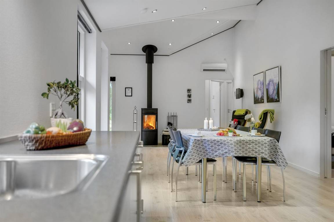 EinrichtungDas Ferienhaus eignet sich für 8 Personen sowie 1 Kleinkind bis zu 3 Jahren. Die Ferienunterkunft hat eine Wohnfläche von 136 m² und wurde 2012 gebaut. Haustiere dürfen nicht mitgebracht werden. Die Ferienunterkunft ist mit einer energiefreundlichen Luft-Luft- Wärmepumpe ausgestattet. Die Ferienunterkunft ist mit Waschmaschine ausgestattet. Wäschetrockner. Tiefkühlmöglichkeit mit 90 Liter Nutzinhalt. Es gibt außerdem einen Kaminofen. Für die jüngsten Feriengäste ist 1 Kinderhochstuhl vorhanden.