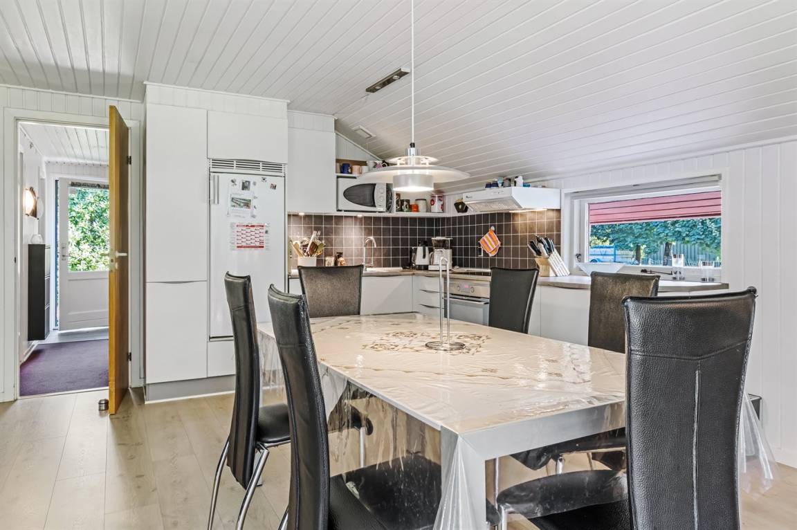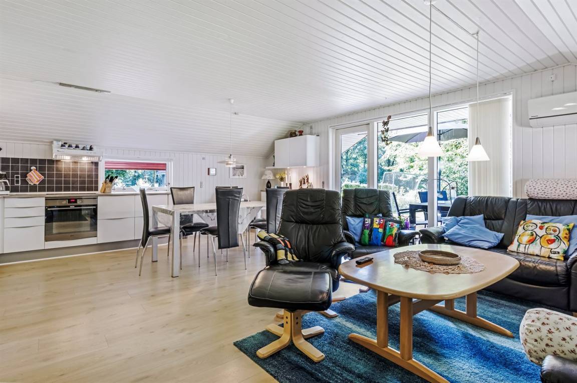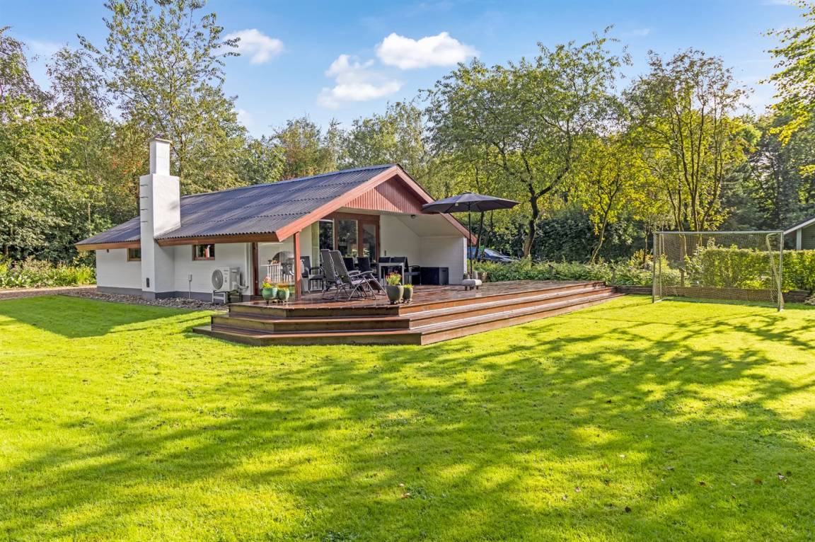 Dieses nette Ferienhaus aus Stein, 1979 gebaut, liegt auf einem schönen, abgeschirmten Naturgrundstück, das von hohen Bäumen umgeben ist. Zum Haus gehören sowohl eine offene als eine überdachte Terrasse mit Gartenmöbeln. Innen gibt es Hoolzwände und -decken sowie Teppichböden. Badezimmer mit Duschnische, Fußbodenheizung, Waschmaschine und Wäschetrockner. Die Küche ist u. a. mit Geschirrspüler, Mikrowelle, Umluftofen und Kühlschrank mit Gefrierfach ausgestattet. Separates Tiefkühlgerät im Geräteraum. Das Wohnzimmer ist mit Kaminofen, TV, Gemeinschaftsantenne (deutsche Programme), Radio mit CD-Spieler eingerichtet. Die Schlafplätze des Hauses verteilen sich auf 3 Schlafzimmer; 1 mit Doppelbett, 1 mit 2 Einzelbetten (können zusammengeschoben werden) und 1 mit Etagenbett. Kinderbett und Kinderhochstuhl sowie Sandkasten und Schaukel für die Kinder. Es ist eine energiegerechte Wärmepumpe installiert. Windschutzhütte und Carport auf dem Grundstück. Das Haus liegt in Arrild Ferieby. Angelsee in der Nähe des Hauses.