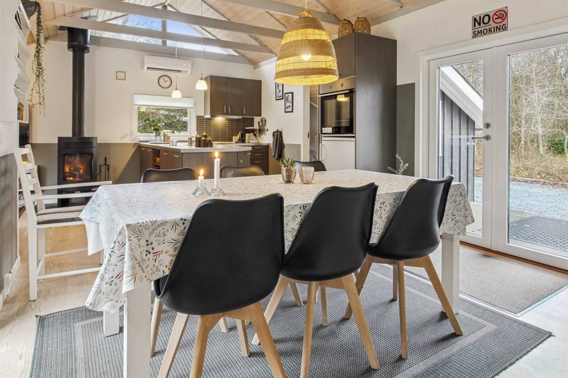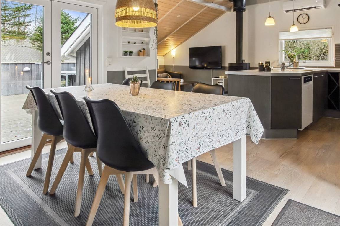 Das Ferienhaus eignet sich für 6 Personen sowie 1 Kleinkind bis zu 3 Jahren. Die Ferienunterkunft hat eine Wohnfläche von 64 m² und wurde 1977 gebaut. 2011 wurde die Ferienunterkunft renoviert. Es ist erlaubt 2 Haustiere mitzubringen. Die Ferienunterkunft ist mit einer energiefreundlichen Luft-Luft-Wärmepumpe ausgestattet. Die Ferienunterkunft ist mit Waschmaschine ausgestattet. Wäschetrockner. Tiefkühlmöglichkeit mit 15 Liter Nutzinhalt. Es gibt außerdem einen Kaminofen. Für die jüngsten Feriengäste ist 1 Kinderhochstuhl vorhanden.
