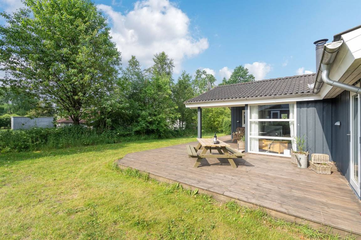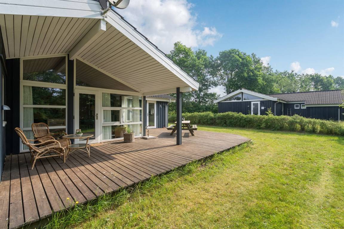 Dieses schöne Ferienhaus mit Whirlpool und Sauna liegt in der Nähe der vielen Einrichtungen des Feriendorfes "Arrild Ferieby". Das Ferienhaus ist hell und modern eingerichtet. Die Küche liegt die in offener Verbindung mit dem Essbereich und dem Wohnzimmer mit Panoramafenster, Kaminofen und Zugang zur teilweise überdachten Terrasse. Auf der Terrasse stehen Grill und Gartenmöbel zur Verfügung.
