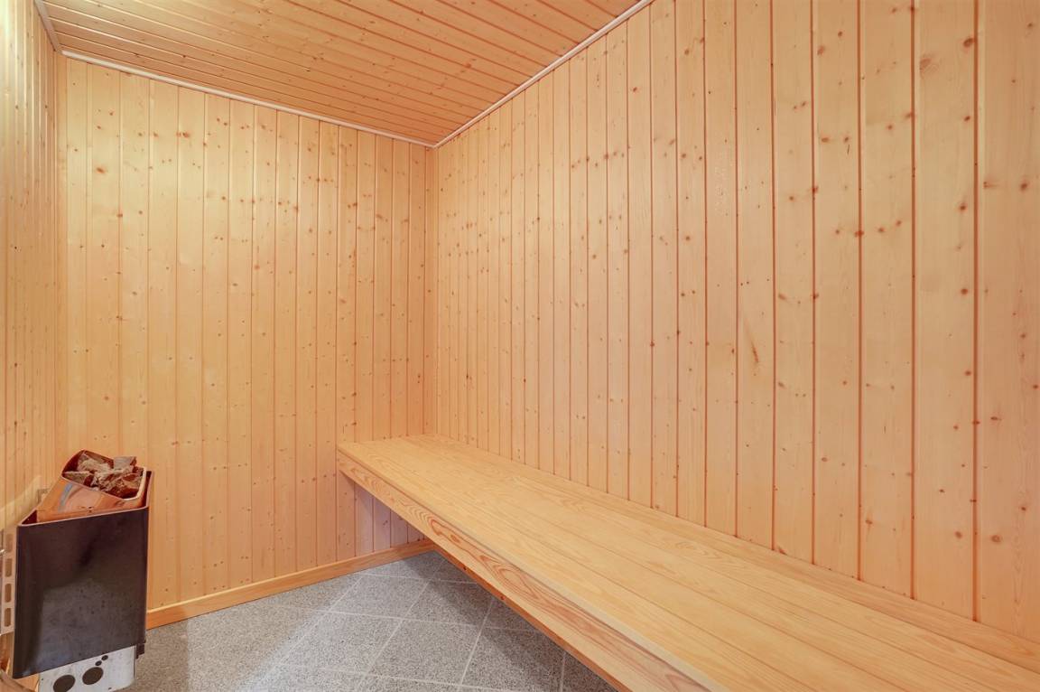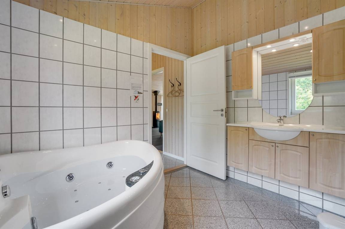 Es gibt vier gute Schlafzimmer mit gutem Schrankplatz sowie zwei Badezimmer mit Duschnische und Fußbodenheizung. Das eine Badezimmer ist außerdem mit einem 2-Personen-Whirlpool ausgestattet und hat Zugang zur Sauna des Hauses. An weiterer Ausstattung können Waschmaschine und Wäschetrockner erwähnt werden und es sind kabellose Internetverbindung und ein Ladestecker für Elektroautos installiert. Das Haus ist mit einer energieeffizienten Wärmepumpe ausgestattet, die ganzjährig ein gutes Raumklima gewährleistet.