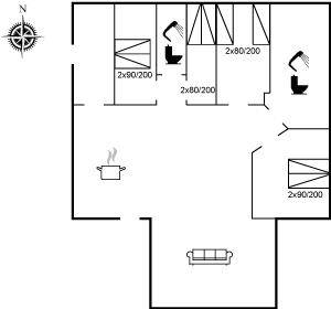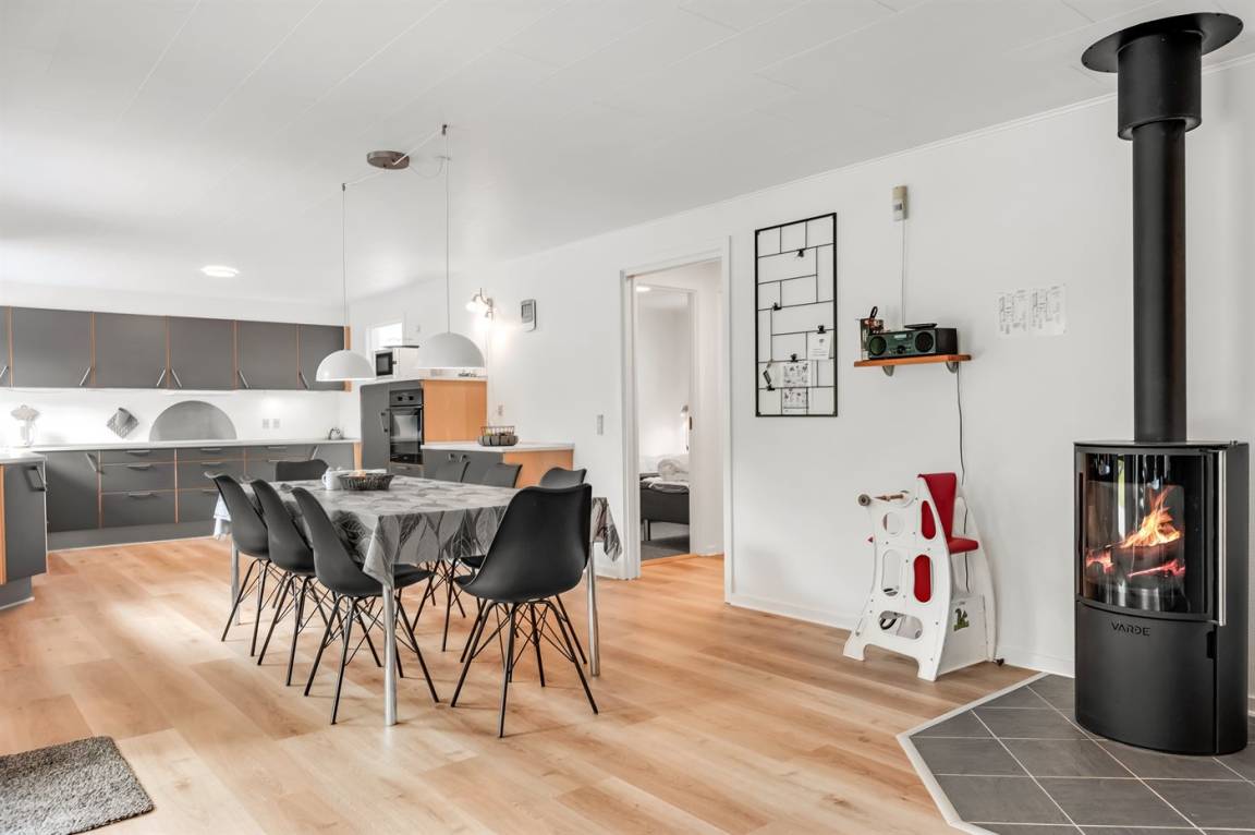 EinrichtungDas Ferienhaus eignet sich für 8 Personen sowie 1 Kleinkind bis zu 3 Jahren. Die Ferienunterkunft hat eine Wohnfläche von 119 m² und wurde 2007 gebaut. Haustiere dürfen nicht mitgebracht werden. Fußbodenheizung im Wohnraum. Die Ferienunterkunft ist mit Waschmaschine ausgestattet. Wäschetrockner. Tiefkühlmöglichkeit mit 120 Liter Nutzinhalt. Es gibt außerdem einen Kaminofen. Für die jüngsten Feriengäste ist 1 Kinderhochstuhl vorhanden.