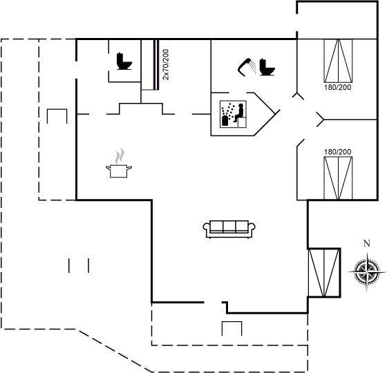 DraußenDie Ferienunterkunft liegt auf einem 850 m² großen Naturgrundstück. Das Grundstück ist eingezäunt. Die Entfernung zum Meer beträgt 30000 m.Die Entfernung zum Wattenmeer beträgt 20000 m. Die nächste Einkaufsmöglichkeit liegt 600 m entfernt. Es stehen sowohl offene als auch 10 m² überdachte Terrassen zur Verfügung. Es gibt Spielgeräte für draußen in der Garage. Die Entfernung zu einem Spielplatz beträgt 200 m. Parkplatz auf dem Grundstück.