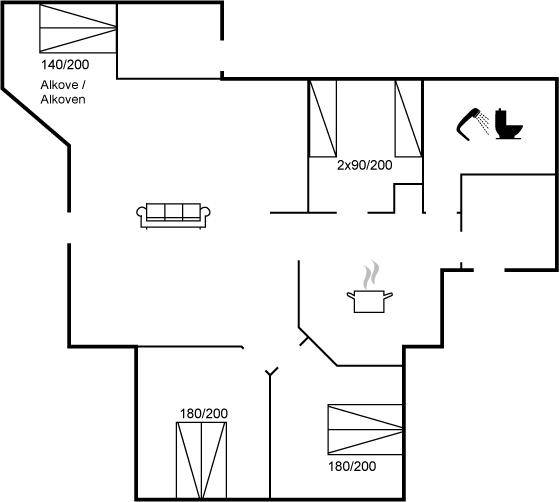 SchlafverhältnisseDie Schlafplätze verteilen sich auf 3 Schlafräume. 4 Schlafplätze in Doppelbetten. 2 Schlafplätze in Einzelbetten.2 Schlafplätze im Alkoven. 2 von diesen Schlafplätzen befinden sich im Wohnzimmer. Ferner steht ein Kinderbett zur Verfügung.