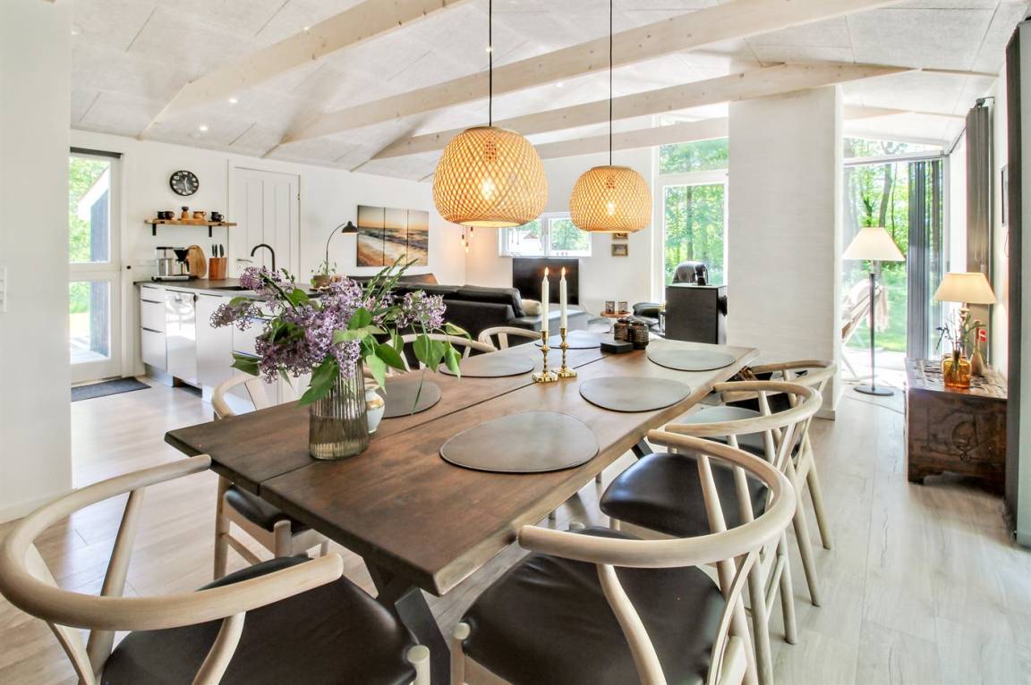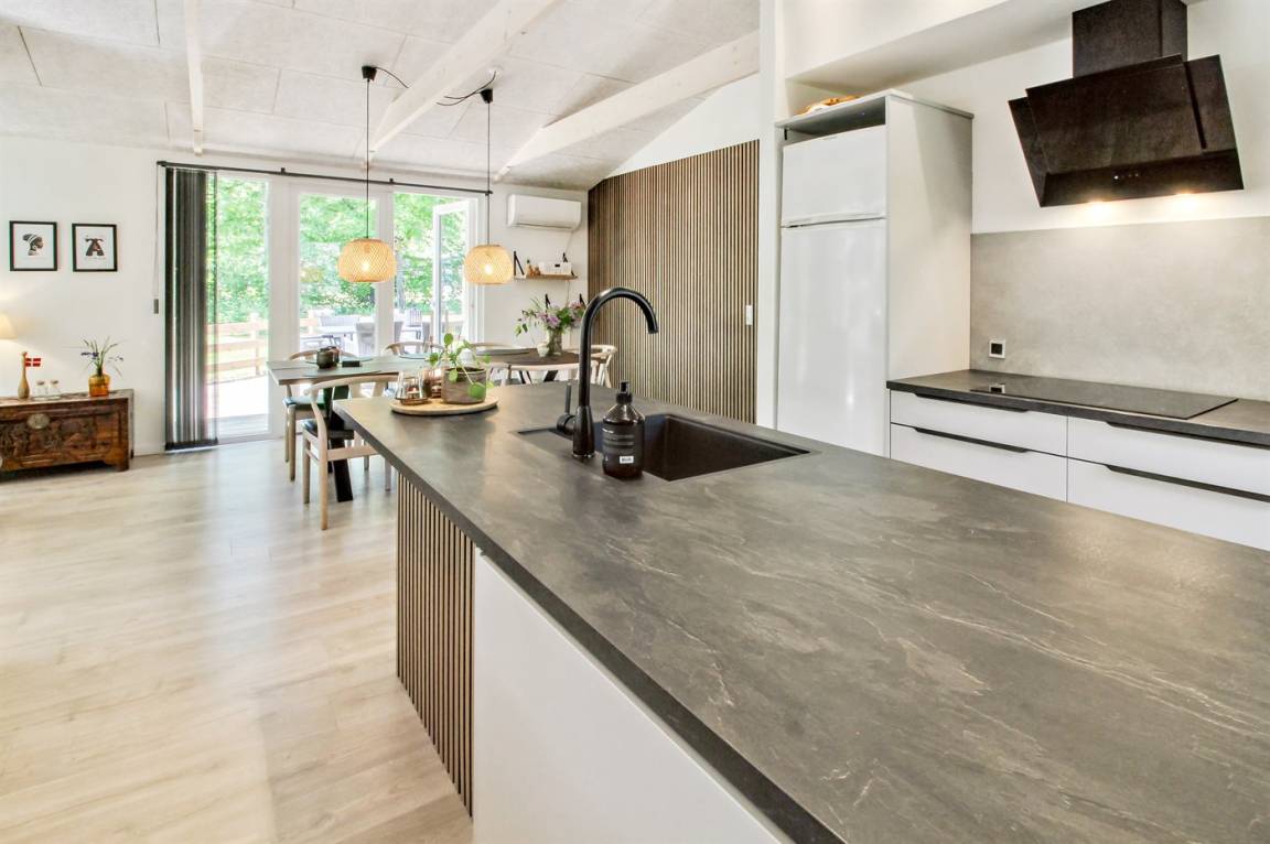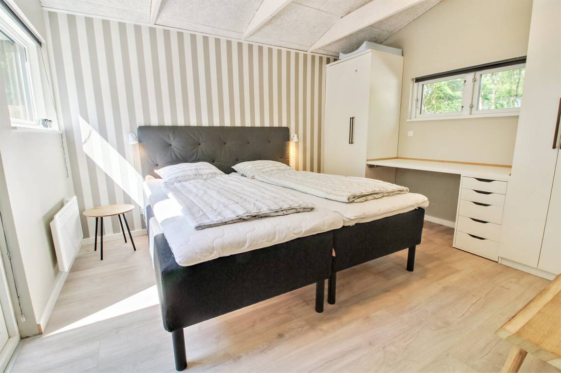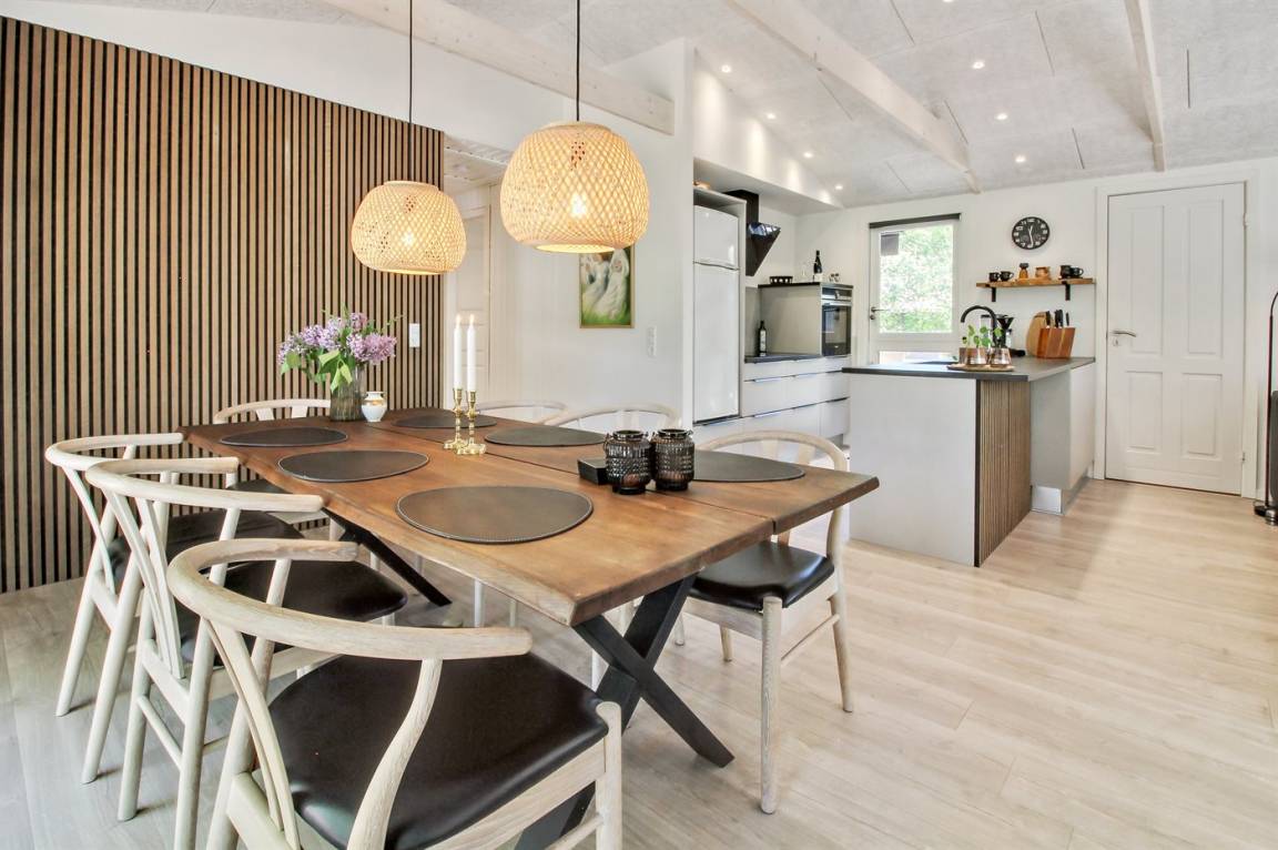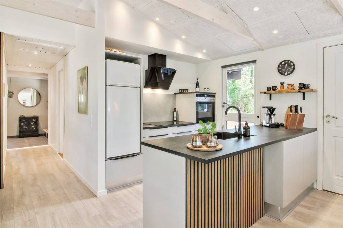 Das Ferienhaus wurde vollständig renoviert und präsentiert sich hell und einladend mit ausreichend Platz für 6 Personen. Das Haus ist gemütlich und mit komfortablen Möbeln eingerichtet. Es gibt einen Eingangsbereich mit genug Platz für Jacken und Schuhe, eine große, gut ausgestattete Küche in offener Verbindung zum Wohnzimmer mit Decken bis zum First und Kaminofen, ein schönes Badezimmer mit Duschnische sowie 3 gute Schlafzimmer mit Schrankplatz.