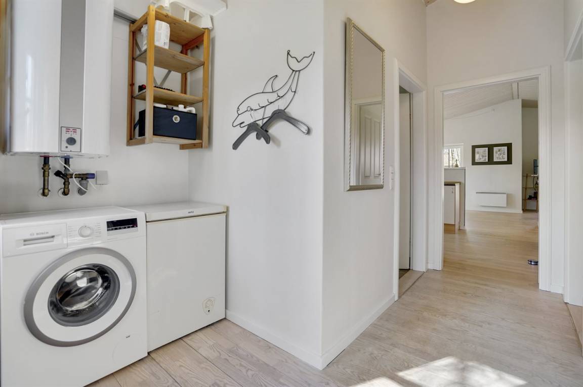 „Prior to the vacation at the holiday home: I forhold til billeder manglede der møbler i stuen. The vacation at the holiday home: Fjernsyn og Wi-Fi virkede ikke Der lå en papkasse og en løs boks i det ene hjørne af stuen. Vi fik besøg af en meget sød og venlig teknikker der fik lavet det så det kunne bruges, samtidig rensede han et afløb der var stoppet. De fleste døre i huset slæbte hænd af gulvet. Cleanliness: Det første der mødte en i gangen da vi tråde ind var en måtte der var beskidt og fyldt med ulækre lange hår, vi brugte en del tid på at rengøre den. Håndvasken i badeværelset var fyldt med revner (hygiejne). The holiday home itself: Det trænger til en opfriskning.“