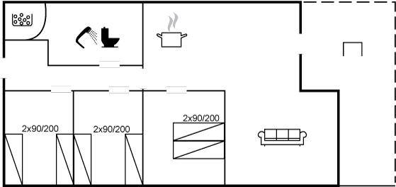 SchlafverhältnisseDie Schlafplätze verteilen sich auf 3 Schlafräume. 2 Schlafplätze in einem Doppelbett. 4 Schlafplätze in Einzelbetten.
