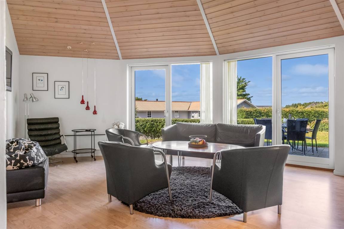 Dieses herrliche Ferienhaus liegt auf einem Grundstück das zur Ferienanlage Arrild Ferieby gehört. Das Haus ist ein "Rundhaus" und diese Bauart sowie die geschmackvolle Einrichtung, im modernen Design, verleihen dem Haus eine ganz besonderne Ambiente. In der Ferienanlage gibt es Aktivitätsmöglichkeiten für die ganze Familie. Kinderfreundliche Schwimmhalle mit 3 großen Bassins, Sauna, Römisches Bad und Dänemarks längste Wasserrutsche (107 m). Außerdem gibt es 2 Put & Take Angelseen, einen 560 m langen Bach für Fliegenfischer mit 3 Pools und künstlicher Strömung, Golfschule, Minigolf, Rollschuhbahn, Padle, Outdoor-Fitness, Petanquebahn, Spielplatz, Fußballplatz, Rearaurants u.a.m. In den Ferienalage gibt es viele schöne Pfade die zu lange Spaziergänge mit oder ohne Hund einladen. Ein tolles Ferienhaus für einen aktiven Urlaub in schöner Natur.