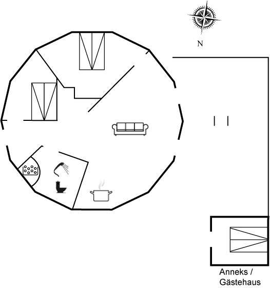 SchlafverhältnisseDie Schlafplätze verteilen sich auf 3 Schlafräume. 6 Schlafplätze in Doppelbetten. 2 Schlafplätze in Einzelbetten. 2 von diesen Schlafplätzen befinden sich im offenen Obergeschoss. 2 von diesen Schlafplätzen befinden sich im Gästehaus. Das Gästehaus ist beheizbar und es gibt einen Ventilator zur Belüftung. Ferner steht ein Kinderbett zur Verfügung.