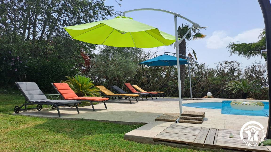 „Nous avons été très bien accueilli par notre hôtesse et son mari. Nous avons reçu des attentions et cadeaux de bienvenue. Nous avons eu accès à la plancha et à la terrasse de la propriétaire pour dîner. La piscine est très agréable et le jardin magnifique. Très bon séjour avec nos enfants.“