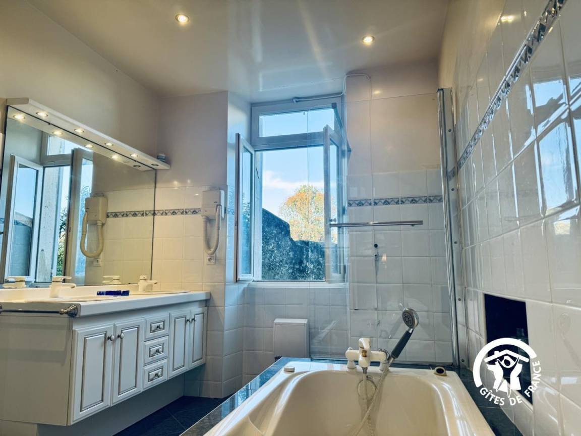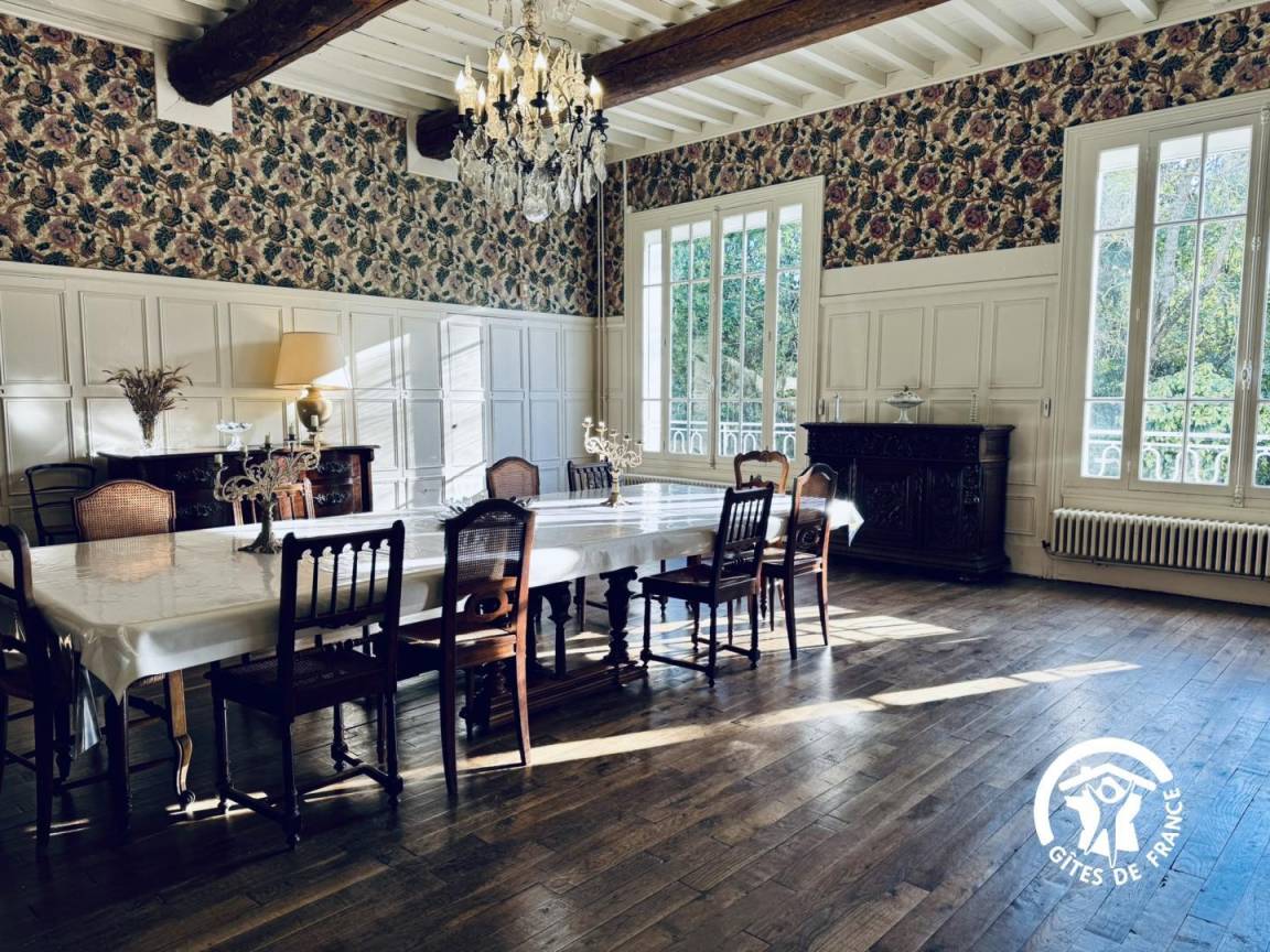 „Un lieu magnifique pour une réunion de famille.Nous étions 15 en Novembre.L'accueil fut trés chaleureux et la visite du domaine un vrai plaisir. Nous allions de surprise en surprise.Tout est pensé pour un séjour réussi pour les enfants comme pour les grands.Le confort (salle de bain et sanitaire) dans chaque chambre, cuisine trés spacieuse, salle à manger impressionnante, rangements, vaisselles.... salle de jeux, salle de sport, velos à disposition, parc et sa surprise que je ne dévoilerai pas !Sans oublier l'accueil des propriétaires et leur disponibilité tout au long de la réservation et le charme de cette belle demeure.Un grand merci de nous tous.“