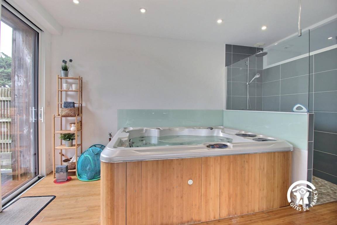 Das Haus ist komplett ausgestattet und vereint Komfort mit hochwertigen Annehmlichkeiten. Nach einem Tag an der frischen Luft verspricht der Spa-Bereich wohltuende Entspannungsmomente. Draußen ermöglicht der komplett umzäunte Garten ungestörte Sonnentage.