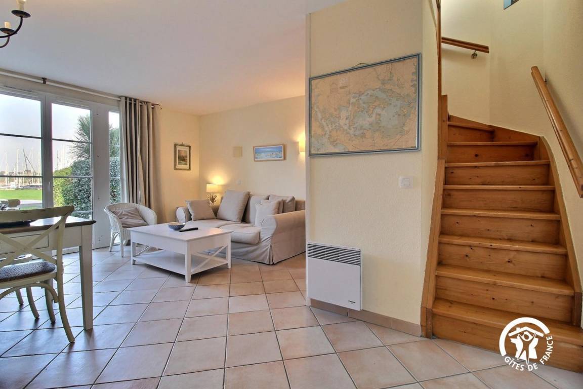 Das Haus verfügt über ein helles Wohnzimmer und eine Terrasse mit Blick auf die Boote – perfekt zum Entspannen und Genießen der Aussicht.