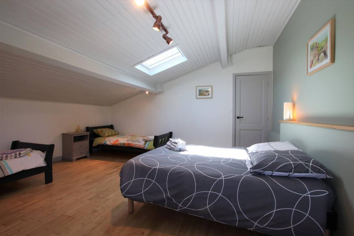 - 1 Schlafzimmer mit 1 140-cm-Bett und 2 90-cm-Betten