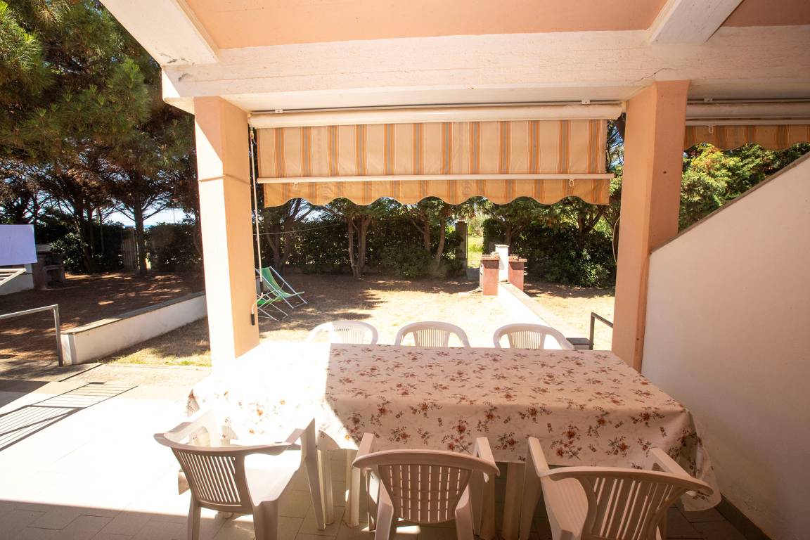 The furnished terrace is partly roofed and screened off from the neighboring terraces. The outdoor area of each house includes a share of garden, where you find a grill at your disposal.
