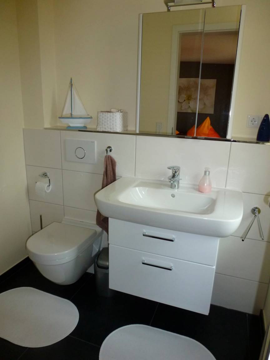 Wie sieht sie aus? Aus dem Eingangsbereich mit Garderobe im Erdgeschoß gelangen Sie durch das eigene Treppenhaus ins Obergeschoß und in die eigentliche Wohnung. Sie finden dort das Wohnzimmer mit kleiner, offener Küche, ein Schlafzimmer und das Tageslichtbad mit WC und Dusche. Die Ausstattung beinhaltet neben der komplett eingerichteten Küche (Spülmaschine, Backofen, Kochstelle, Kühlschrank mit Eisfach) auch SAT-TV, Audiosystem mit Radio und CD-Player, Internetzugang, Schlafsofa (aufklappbar) im Wohnzimmer, Doppelbett im Schlafzimmer, Fön im Bad. Auf Wunsch zustellbares Kinderbett. Die Wohnung wird komplett über Fußbodenheizung beheizt.