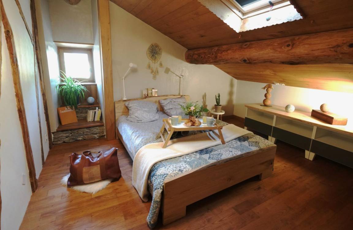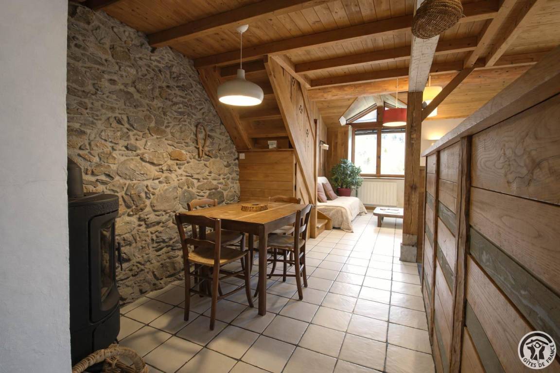 „La grange est un gîte agréable: Espace confortable et tout confort. Les points améliorables sont:-une rembarde qui menace de céder sous le poids et peut donc représenter un danger physique en cas de chute accidentelle-absence de volet au niveau de la fenêtre donnant sur la montagne. Le simple rideau déroulant ne permettait pas de lutter efficacement contre la chaleur caniculaire-2 tapettes à mouches pour lutter contre les nombreux moustiques pénétrant dans le gîte ce n'est pas suffisant-la douche est très étroite mais fonctionnelle-le matelas des lits devraient être changés. Pour le reste c'est satisfaisant.“