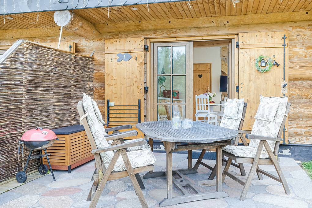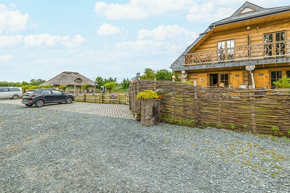 Haus: Imposantes Blockhaus aus Naturstämmen auf einem 3200 m² großen, gepflegtem Grundstück in 2024 neu erbaut. Aufgeteilt auf 5 gemütliche, urige Reihenhäuser, je über zwei Etagen mit geschmackvoller, individueller Einrichtung. Internet (Glasfaser) über WLAN. Fußbodenheizung im Erdgeschoß. Warmwasser über Durchlauferhitzer. Terrasse mit Sitzmöbeln, Balkon. In der Anlage: Sauna mit Glasfront und herrlichem Blick auf umliegende Felder (Gebühr), geräumiges Gartenhaus mit Sitzgelegenheiten. Gemauerter Grill zur gemeinschaftlichen Nutzung, Lagerfeuerstelle.1 Parkplatz/ Ferienhaus auf dem Grundstück. Ladesäule für E-Autos (Gebühr). Auf Wunsch Frühstücks-Service oder Massagen vermittelbar (Gebühr).