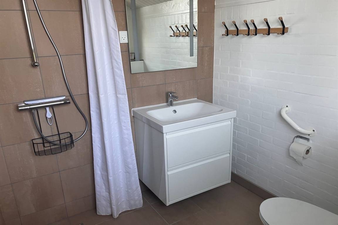 Das Haus ist hell eingerichtet mit schönen Möbeln und Betten, verteilt auf 2 Schlafzimmer. Im Fernseher sind ein DVD-Player und ein Radio integriert. Eine neue Wärmepumpe mit Klimaanlagenfunktion ist ebenfalls installiert.