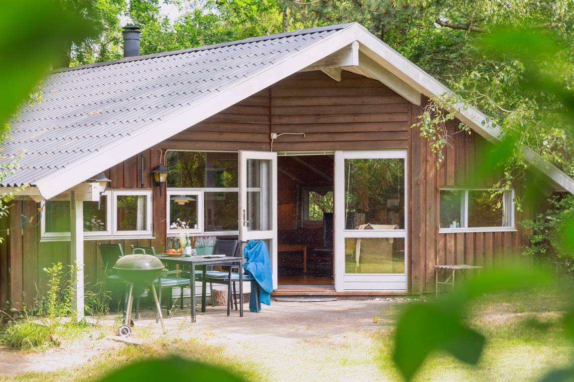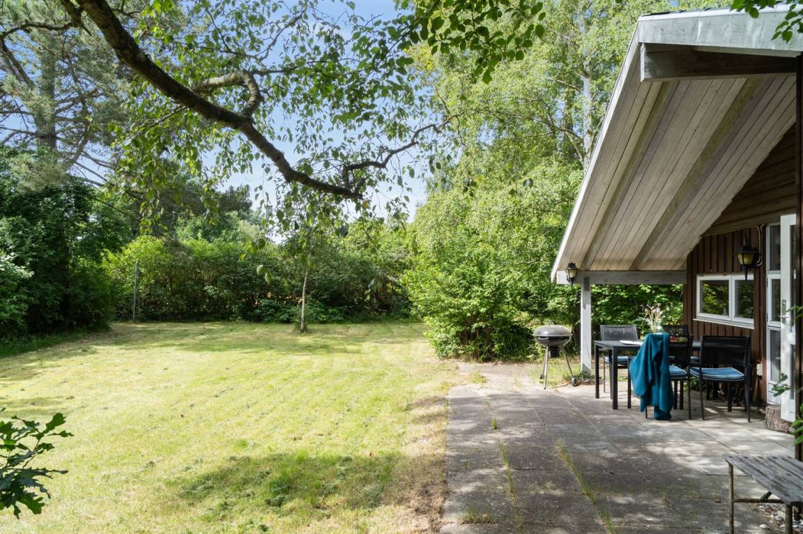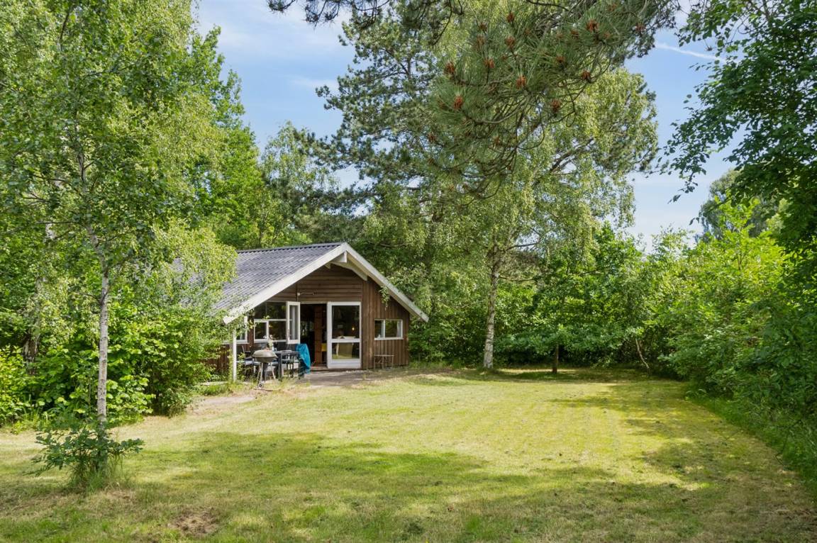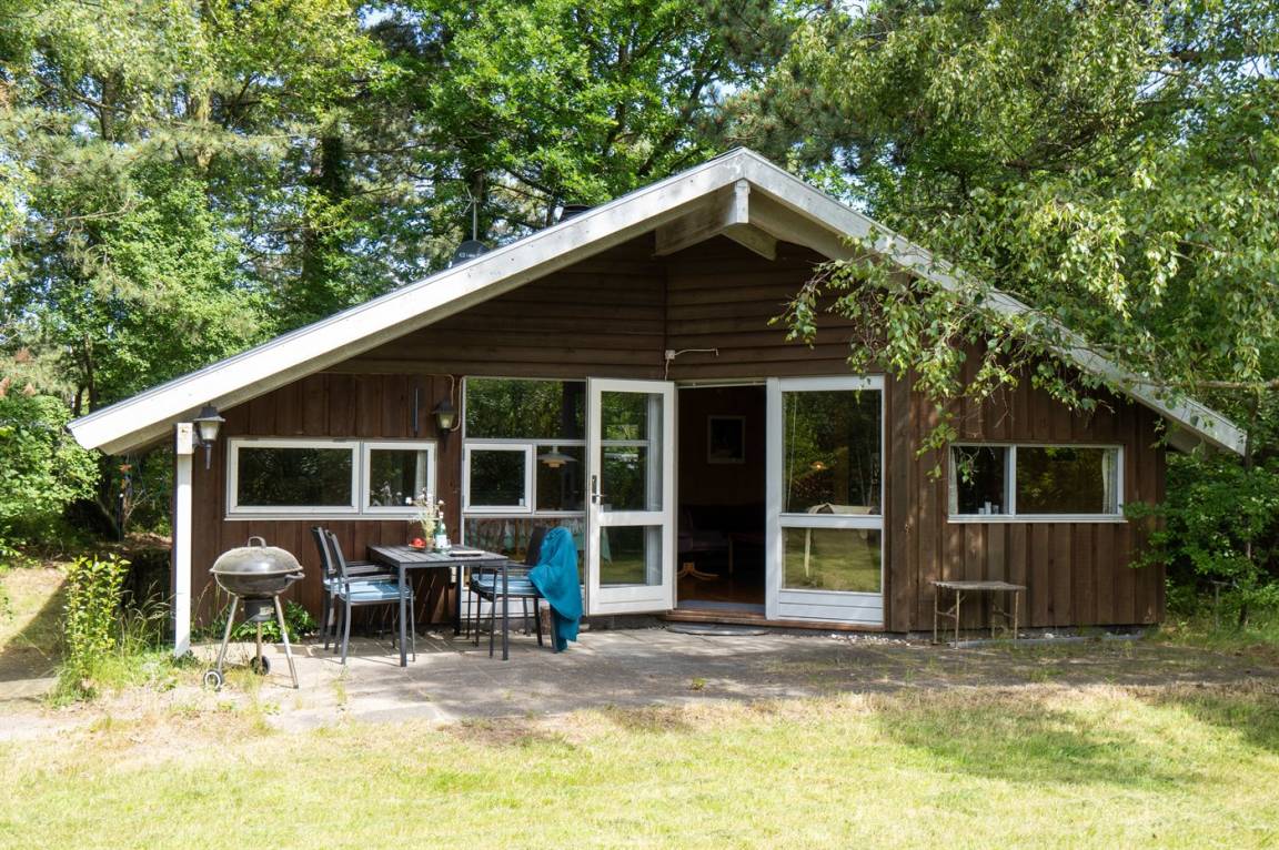 Gemütliches Ferienhaus auf einem ungestörten Naturgrundstück mit Rasen und vielen großen Bäumen gelegen.