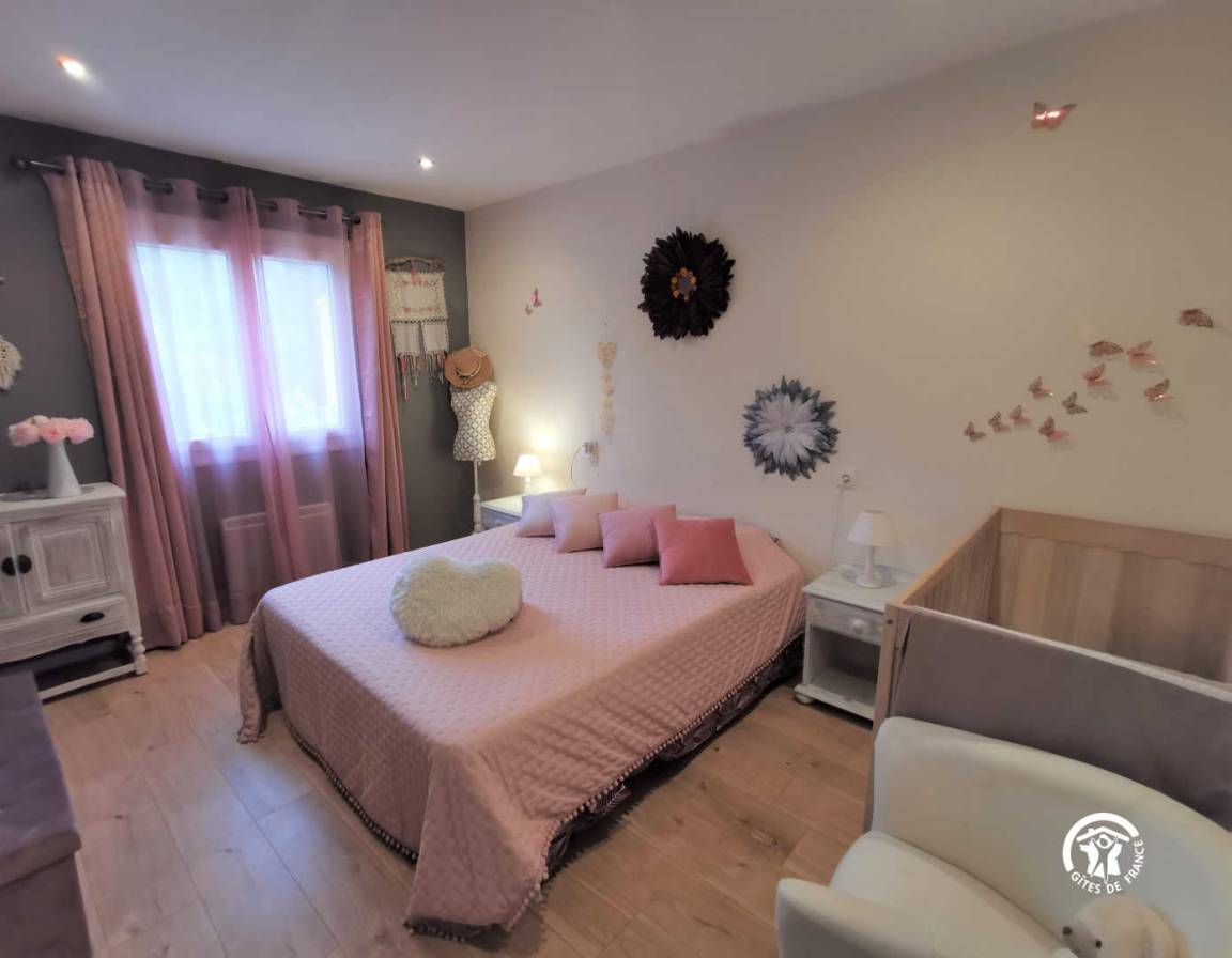 „Nous nous sommes réunis en famille (7 adultes et un enfant de 18 mois) chez Hélène et Jean-François pendant une semaine qui au final nous a parut bien trop courte ! A notre arrivée nous avons été chaleureusement accueillis autour d'un petit verre et nous avons été marqué par la sympathie naturelle de nos hôtes. Le lieu est magnifique et très bien étudié. La maison comporte une pièce centrale avec cuisine ouverte et grand salon. Une immense télé avec toutes les chaînes pour occuper si le temps ne le permet pas mais de notre côté nous avons eu la chance d'avoir un grand soleil pendant le séjour. Il y a également un petit coin jeux/bibliothèque ouvert sur le salon conçu pour les enfants. De chaque côté il y a un espace avec deux chambres, une salle bain et une clim. Les chambres sont décorées avec soin et la literie est impeccable. Un autre petit espace est aménagé en salle de sport avec un vélo d'intérieur et un tapis de course. Passons à l'extérieur… C'est à peu près là où nous avons passé la majeure partie de notre temps. Un espace cuisine d'extérieur à été créé a l'ombre d'un grand arbre. Rien ne manque. Dans ce même espace il y a l'aire de jeux pour les enfants (cabane, trampoline, bac à sable…). L'énorme avantage est que l'espace cuisine/terrasse/aire de jeux est sécurisé par des barrières et petites portes qui permettent d'avoir l'esprit tranquille avec les enfants. La piscine jouxte l'espace cuisine et l'accès est sécurisé lui aussi. La piscine est immense et très belle. Ils ont pensé à créer dans la piscine une partie très peu profonde pour que les enfants s'amuse dedans en ayant pied et également pour que les adultes s'y prélassent !Jean-François, paysagiste de profession, a pensé à mettre une grande haie à côté de la piscine créant ainsi une partie ombragée dans l'après-midi afin de ne pas attraper d'insolation. L'eau est par ailleurs maintenu à une température constante de 30 degrés, un régal pour les longues baignades à toute heure. En dehors de ces“