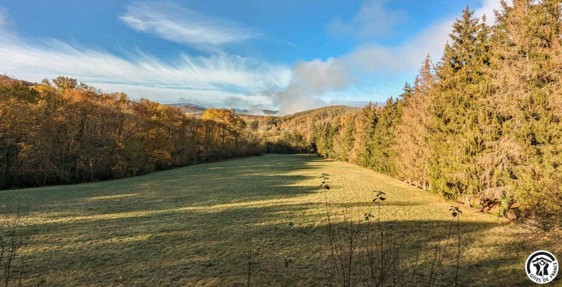 „Gîte avec beau point de vue sur prairie et le relief pyrénéen et doté des équipements domestiques nécessaires et pratiques.“