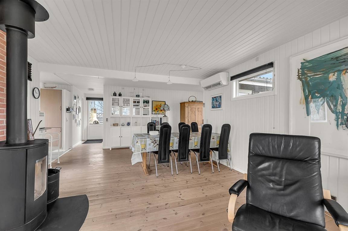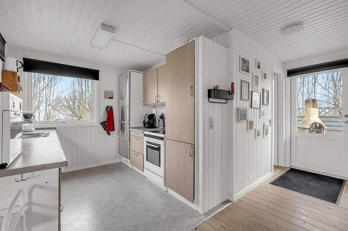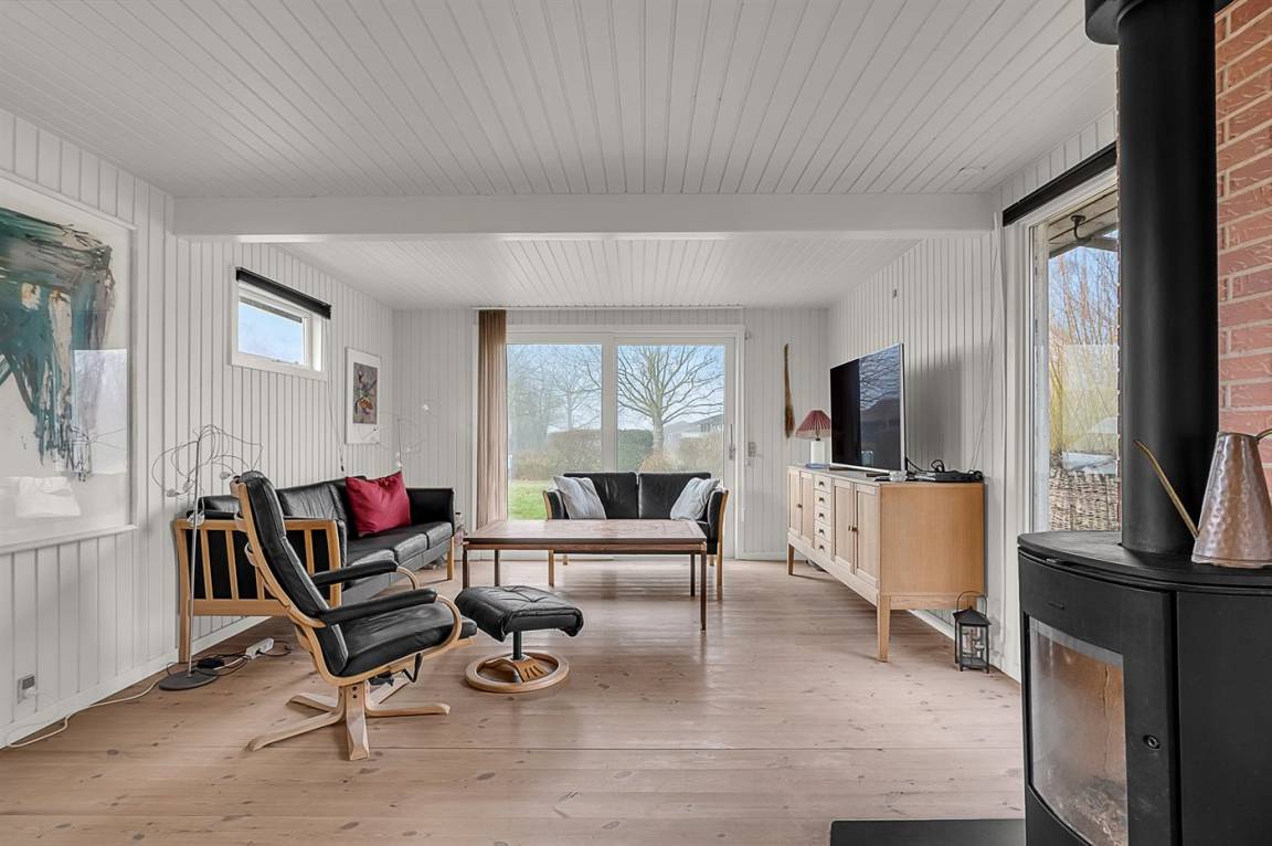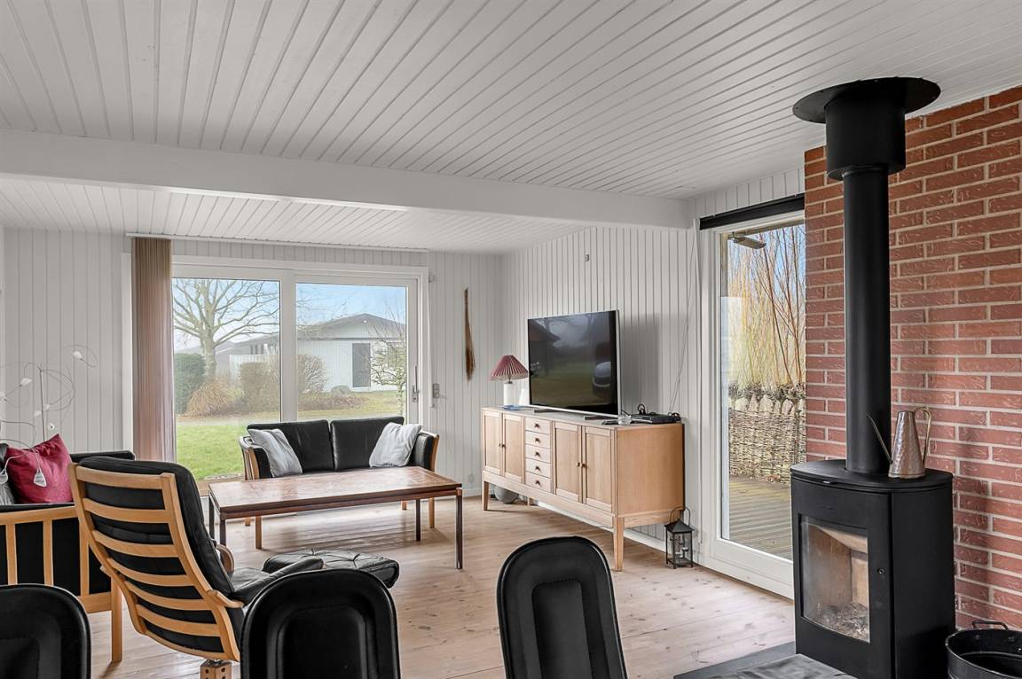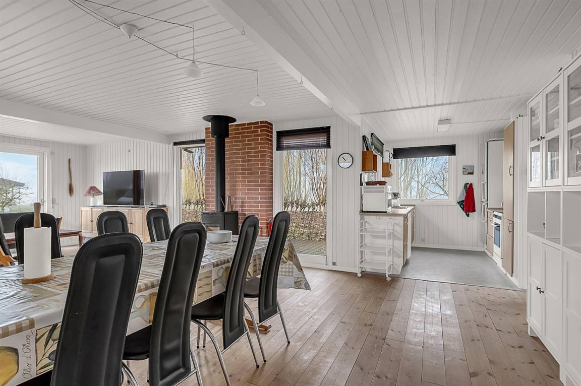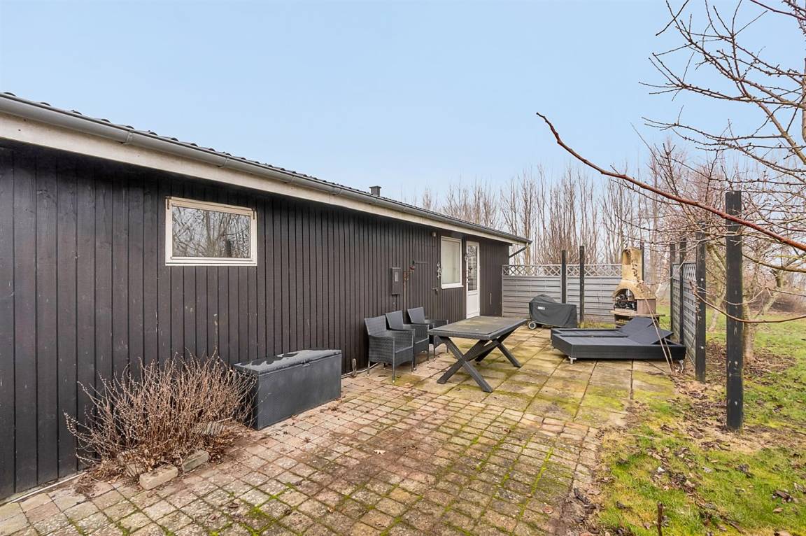 Das Haus liegt ungestört auf einem Eckgrundstück und verfügt über eine schöne Terrassenfläche sowohl vor als auch hinter dem Haus. Von der Terrasse vor dem Haus und vom Wohnzimmer aus hat man Blick auf das Wasser und den Sonnenuntergang, während man auf der Terrasse hinter dem Haus Morgensonne und an windigen Tagen mit auflandigem Wind geschützten Platz findet.