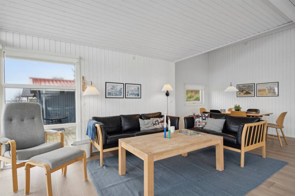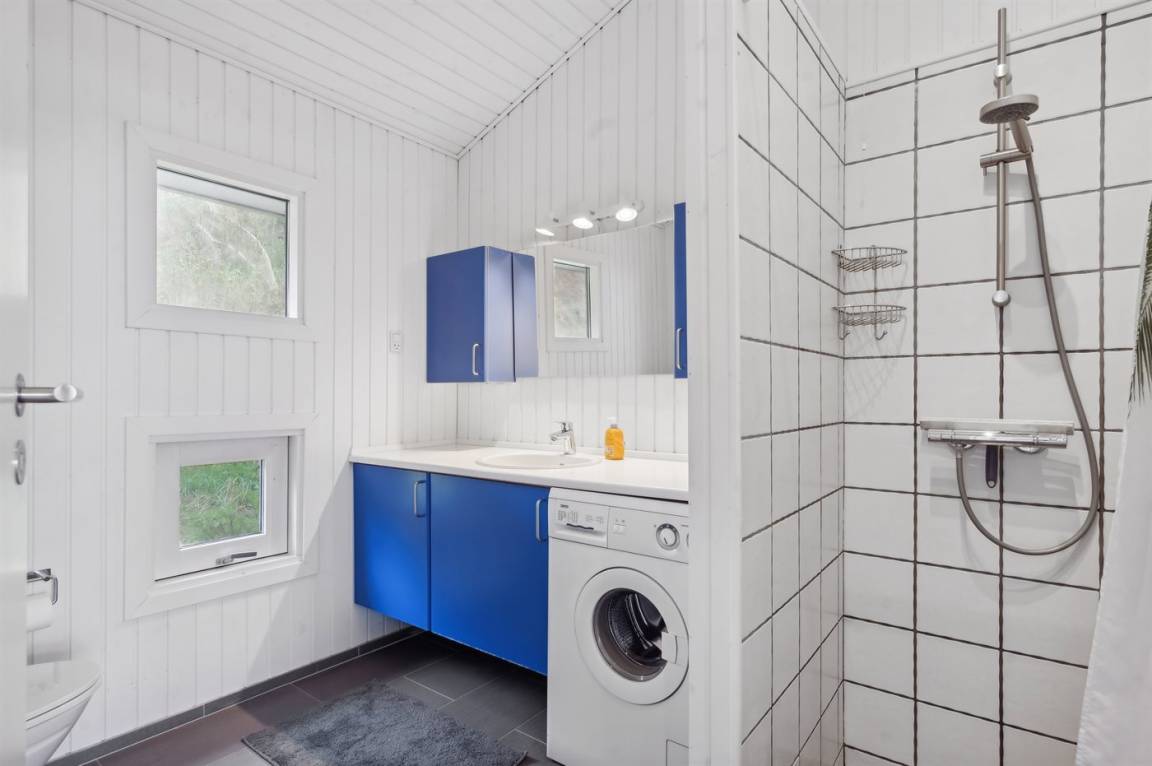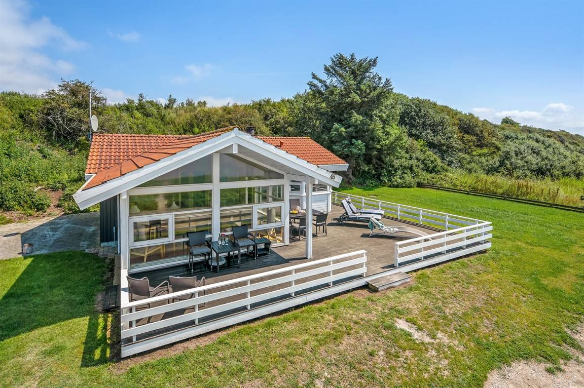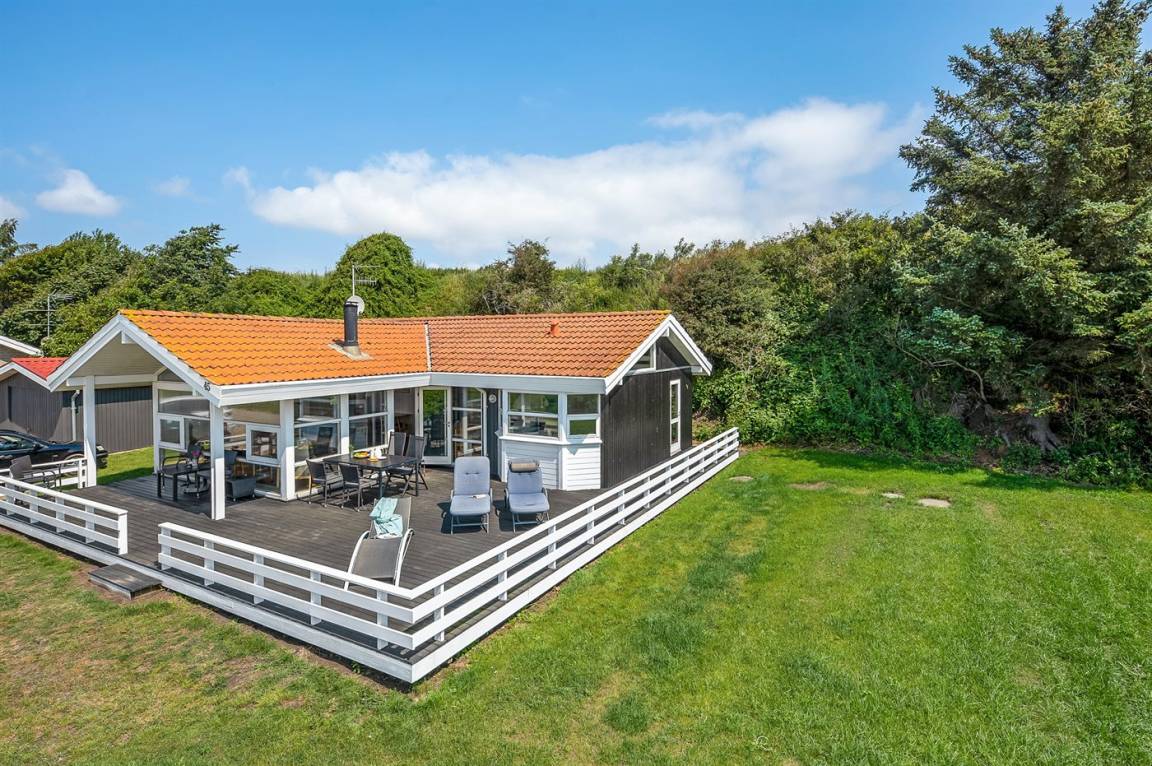 „Advice to other guests: Sommerhuset ligger på en blind vej med få sommerhuse, så der er dejligt stille og med næsten ingen trafik, så vejen foran sommerhuset er ikke generende. Husk vin, når solnedgangen skal nydes fra sommerhusets terrasse - solnedgangen er virkelig smuk. The vacation at the holiday home: Der var småsnavset rundt omkring - spindelvæv, døde fluer, støv. Badeværelset var dog fint rent. Det var mest i køkkenet og stuen, at det ikke var helt i orden. Det havde også været rart med rene vinduer, da sommerhuset netop var valgt primært pga beliggenheden, dvs. panoramaudsigten til havet. Det havde været optimalt med en varmepumpe, der kunne køle. Når der er over 20 grader udenfor, bliver der meget varmt i sommerhuset, og da det ikke var muligt at lukke af for solen med rullegardinerne overalt, blev huset godt opvarmet i løbet af kort tid. Der manglede rullegardiner i køkkenet og i stuen var det ikke alle rullegardiner, der kunne lukke helt af for solen.“