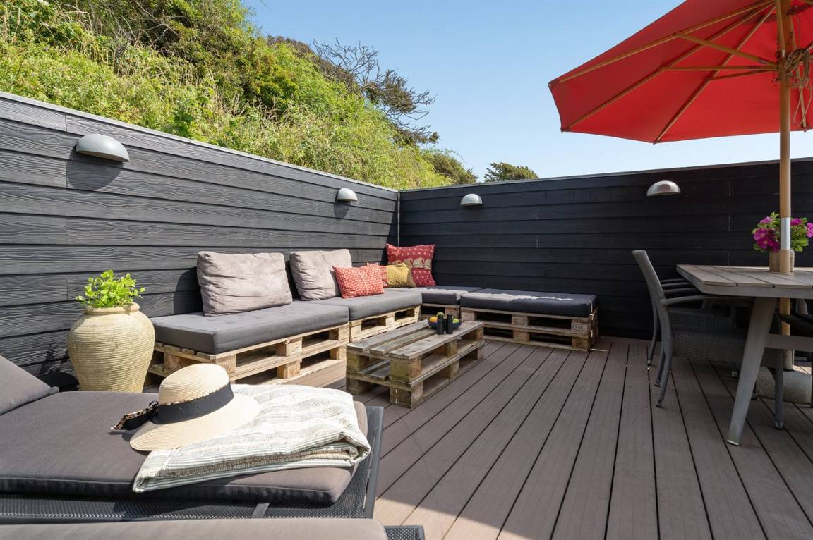 DraußenDie Ferienunterkunft liegt auf einem 465 m² großen Naturgrundstück. Die Entfernung zum Meer beträgt 20 m. Die nächste Einkaufsmöglichkeit liegt 6500 m entfernt. Es steht ein 25 m² Terrassenareal zur Verfügung. Es steht ein Grill zur Verfügung. Parkplatz auf dem Grundstück.