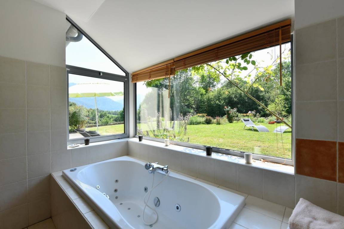 Badezimmer (Whirlpool mit einzigartigem Blick auf die Berge + Dusche), 1 Schlafzimmer (1 Doppelbett), WC.