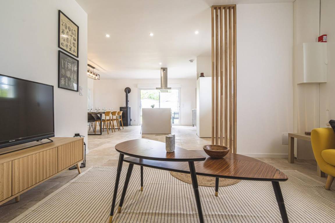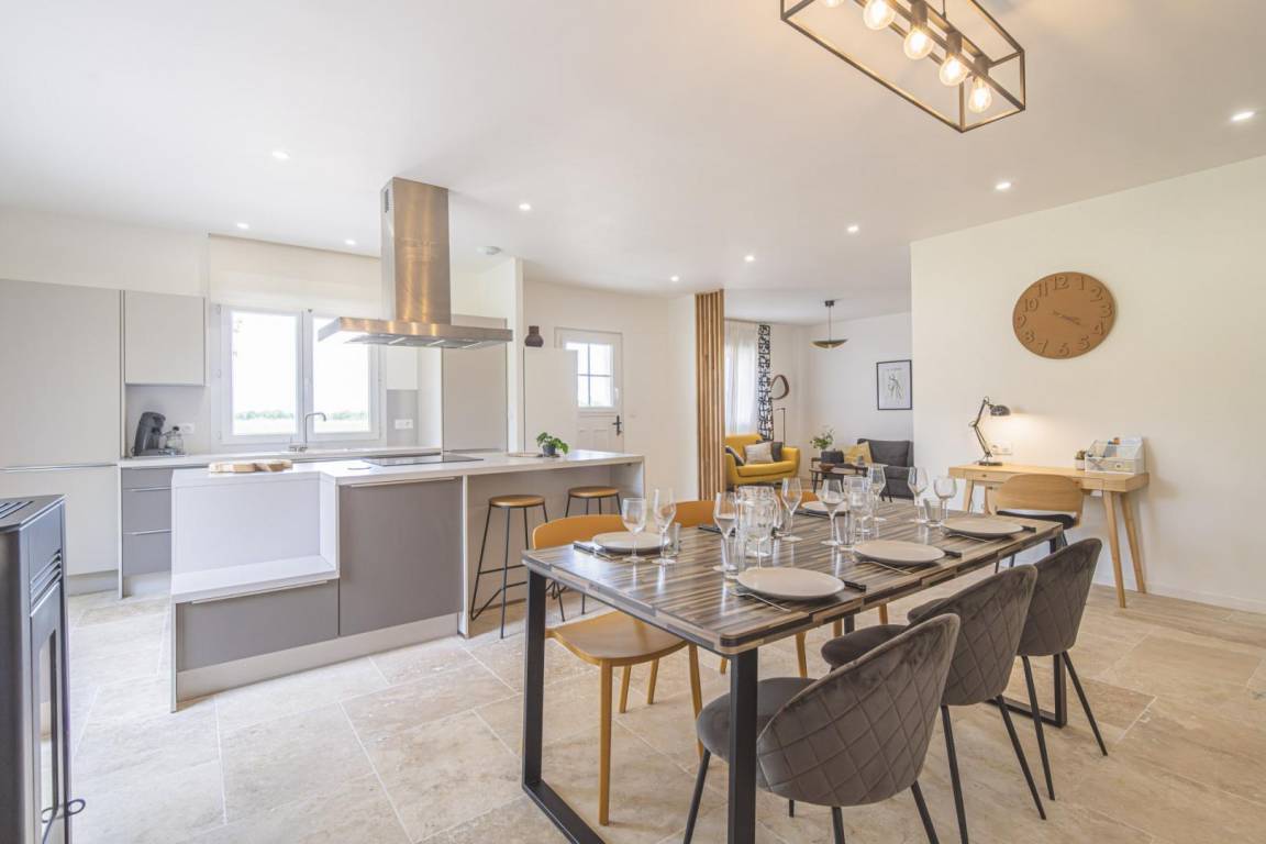 „Le logement a correspondu totalement à la description qui en est fournie sur le site Gites de France et il a répondu parfaitement à notre besoin : très calme, disposant de larges pièces dont la pièce à vivre particulièrement spacieuse, très claire avec ses grandes baies vitrées, l'ensemble étant aménagé du confort moderne et décoré avec un goût subtil. De plus, un sapin de Noël avait été apprêté, ce qui a largement réjoui nos petits-enfants et a agrémenté la remise de leurs cadeaux. Andréa s'est montrée une hôtesse très prévenante, aussi bien pour les modalités d'accueil que pour la mise à disposition d'équipements en sus dont nous avions besoin pour cette période de fêtes de Noël. Je recommande vivement ce lieu à tous ceux qui voudraient découvrir la Champagne et sa capitale, Epernay, située à 10mn en voiture.“