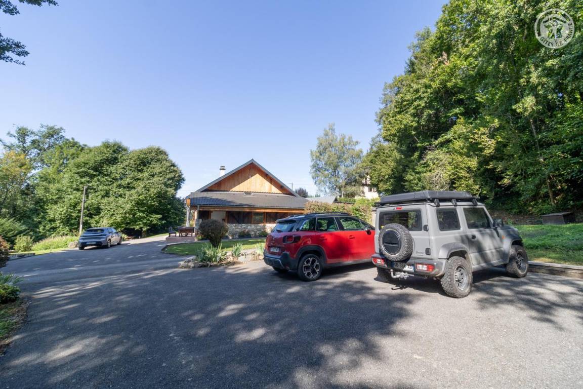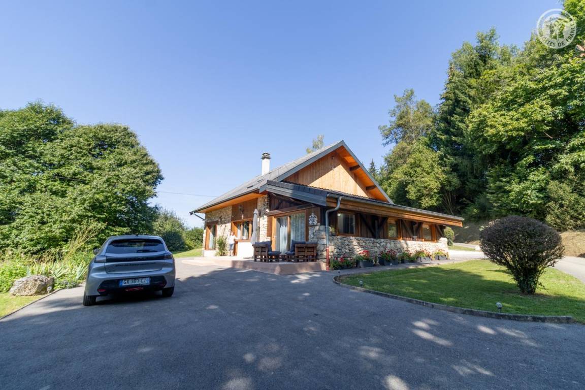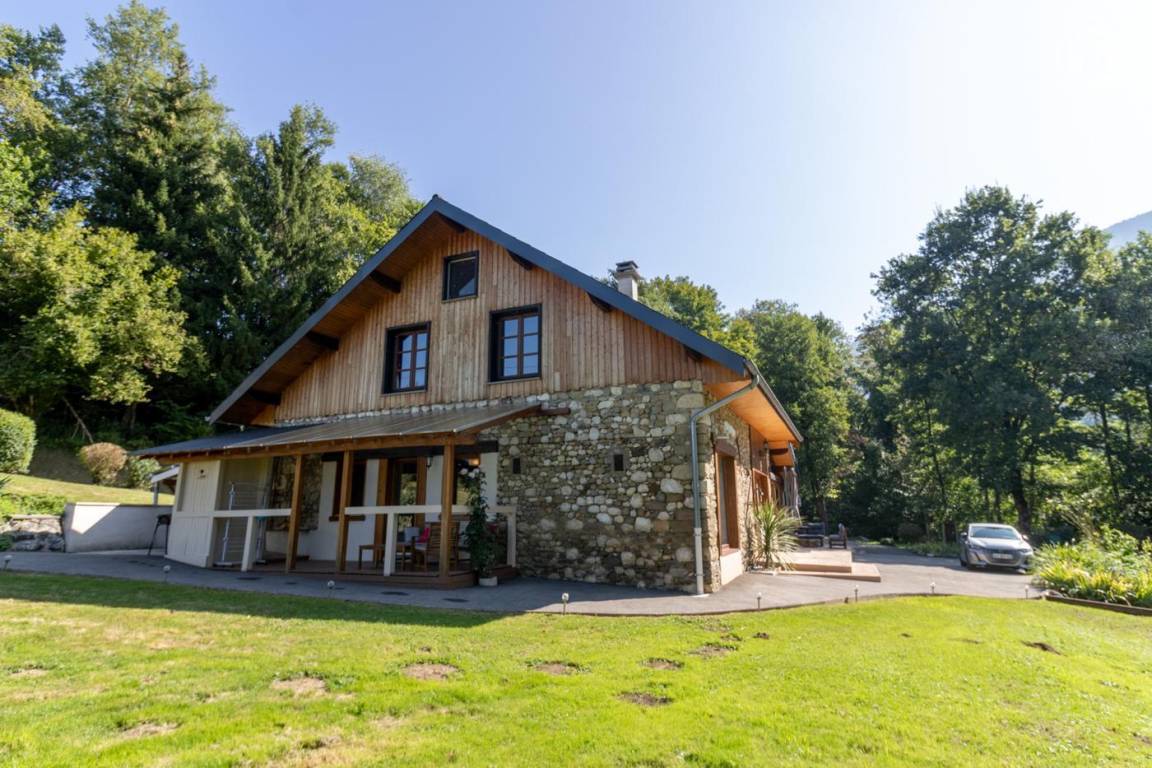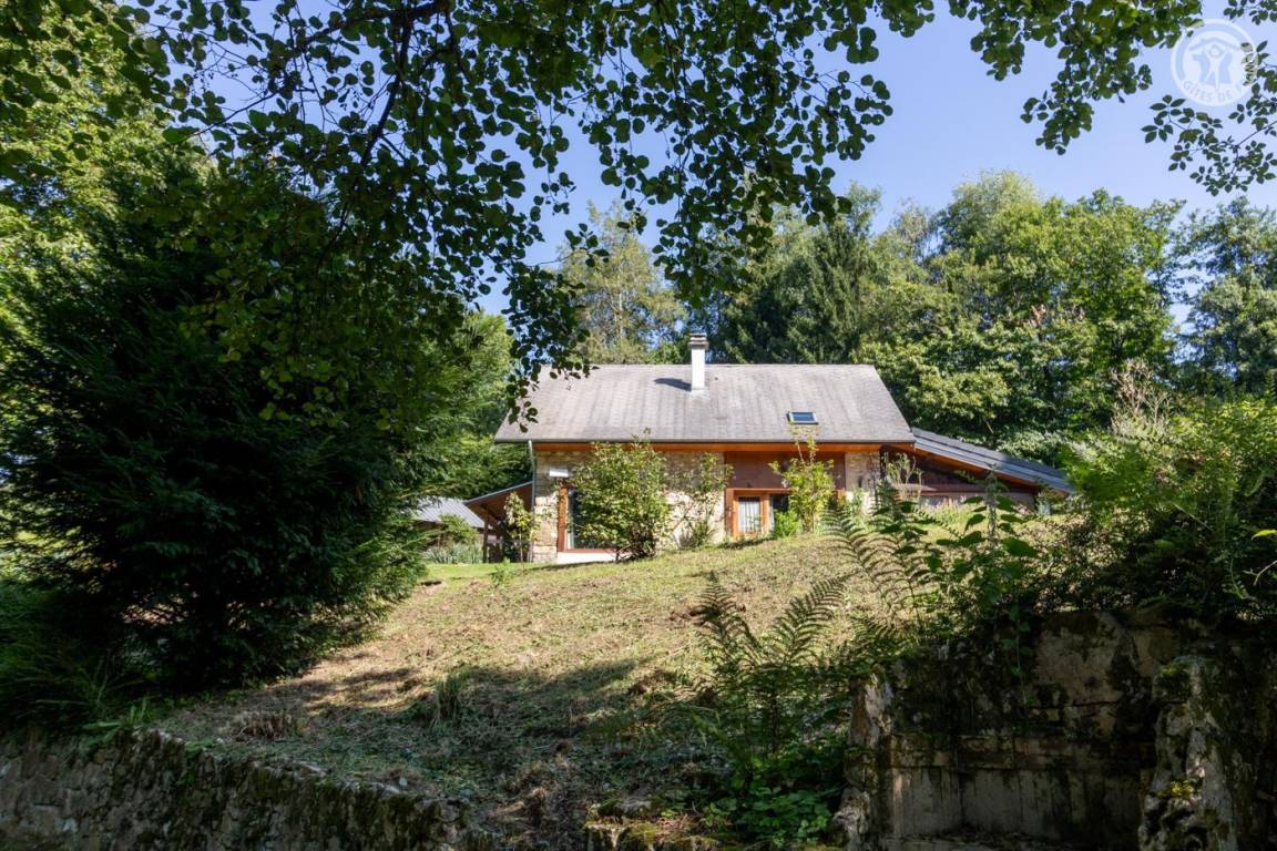 Dieses geräumige, freistehende Haus bietet schöne Wohnflächen, ein Wohnzimmer mit sichtbaren Balken, Steinwänden und einem Kamin, die eine rustikale und warme Atmosphäre schaffen. Die großen Zimmer verfügen über ein eigenes Bad für optimalen Komfort. Draußen bietet ein großer schattiger Garten mit Bach einen idealen Rahmen für Sommertage. Diese Residenz liegt in der friedlichen Landschaft des Savoyer Vorlandes und ist eine wahre Oase der Ruhe, weit weg vom Trubel.