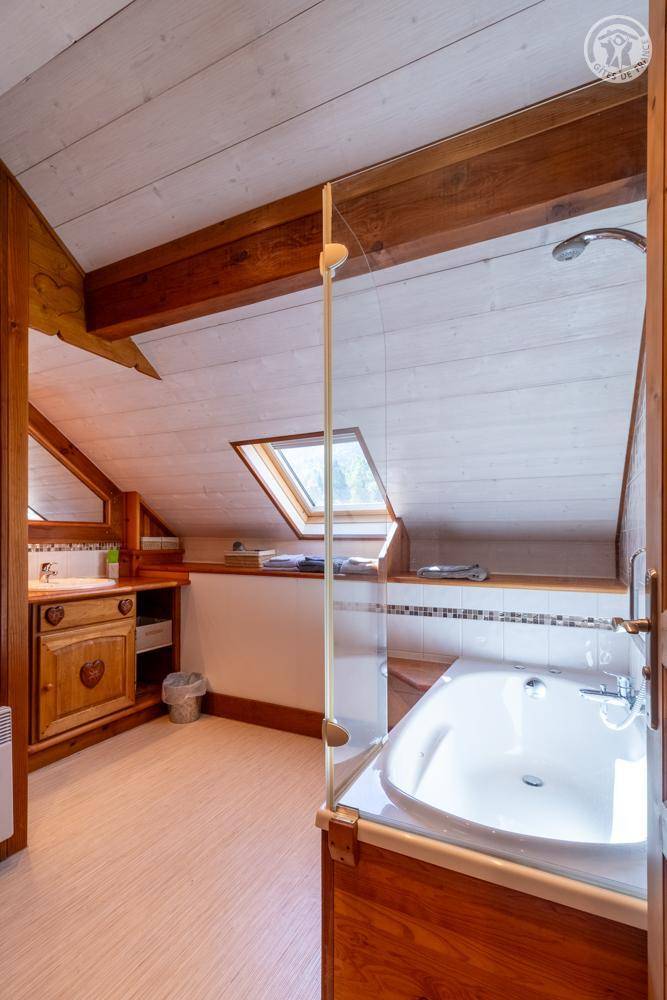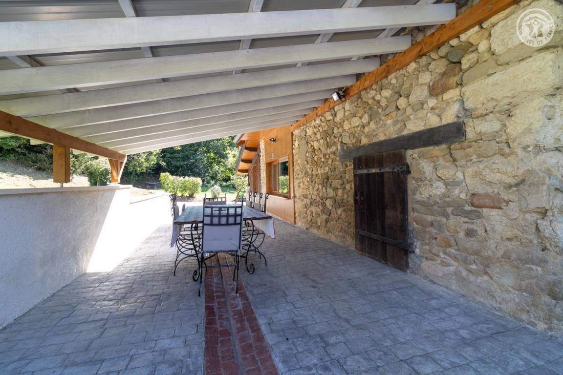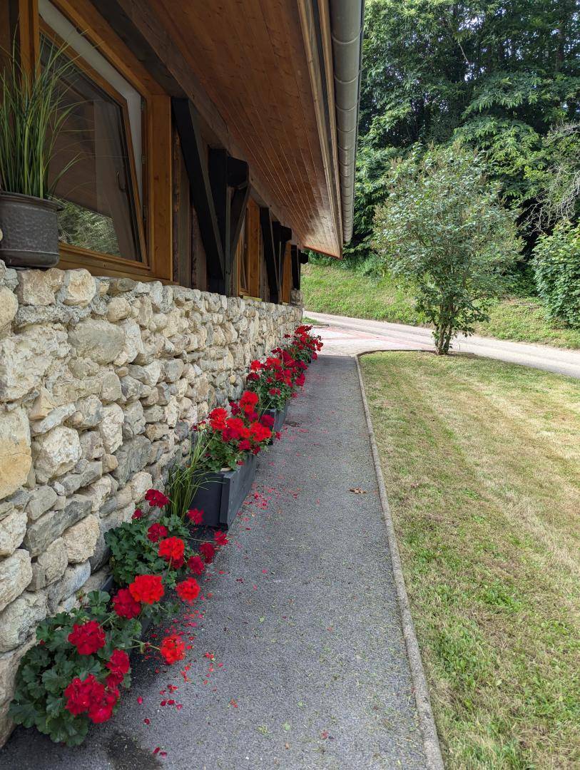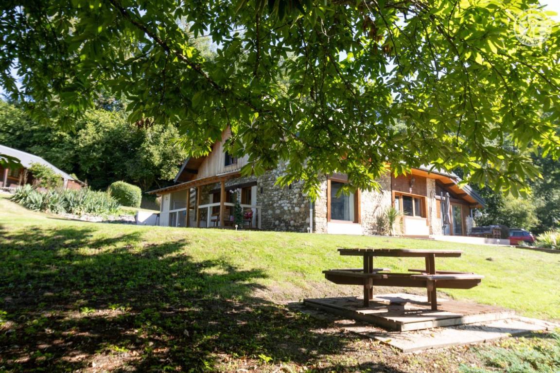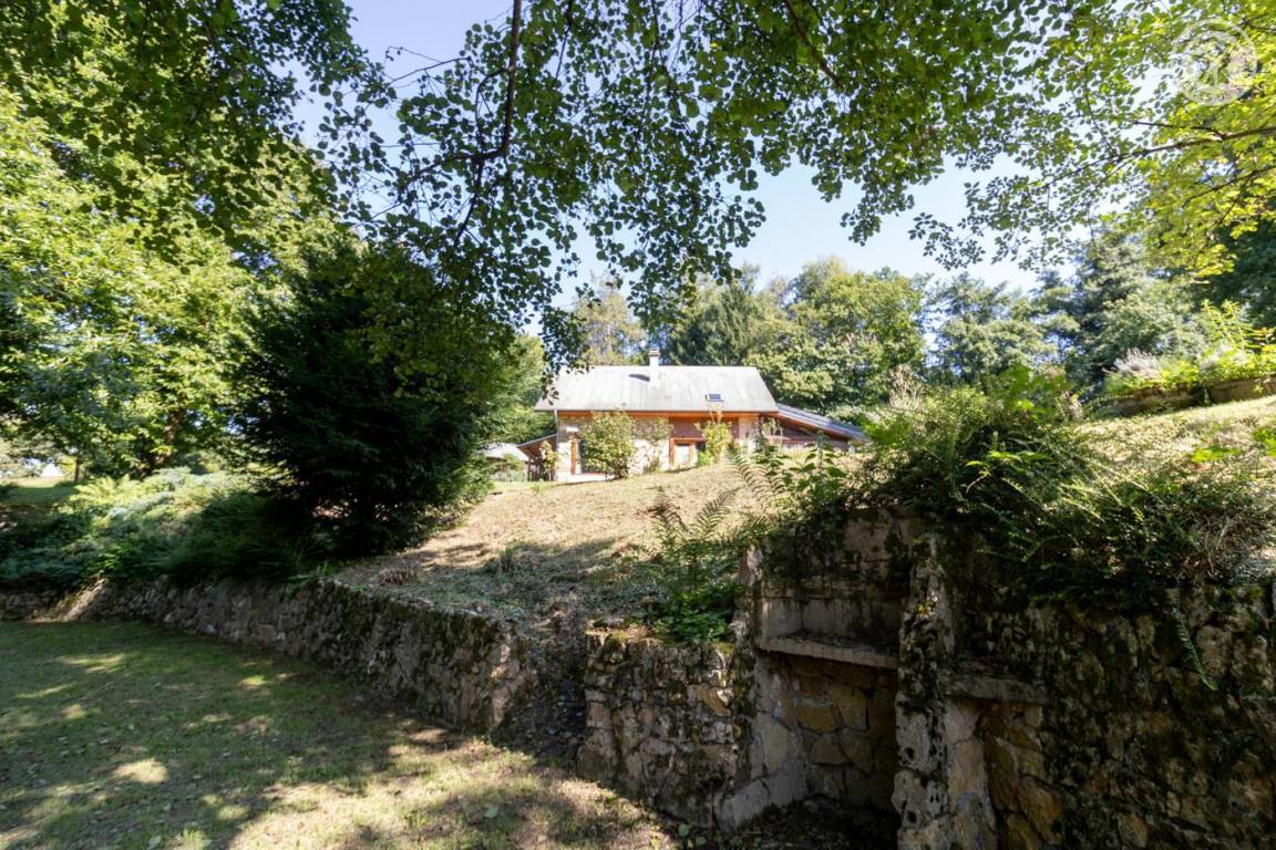 Dieses geräumige, freistehende Haus bietet schöne Wohnflächen, ein Wohnzimmer mit sichtbaren Balken, Steinwänden und einem Kamin, die eine rustikale und warme Atmosphäre schaffen. Die großen Zimmer verfügen über ein eigenes Bad für optimalen Komfort. Draußen bietet ein großer schattiger Garten mit Bach einen idealen Rahmen für Sommertage. Diese Residenz liegt in der friedlichen Landschaft des Savoyer Vorlandes und ist eine wahre Oase der Ruhe, weit weg vom Trubel.