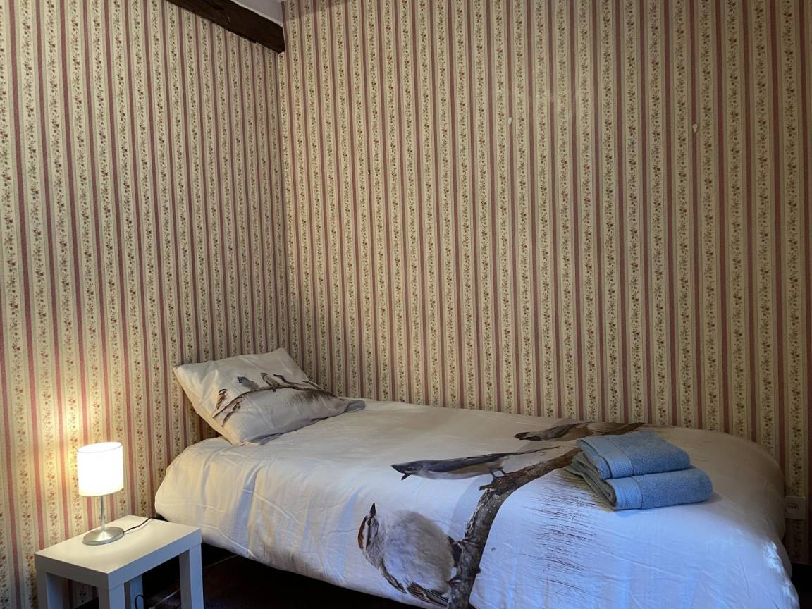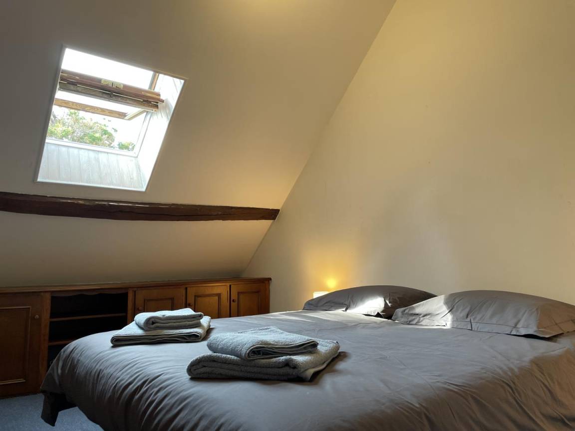 Etage: Vom Zwischengeschoss aus haben Sie Zugang zum Loungebereich mit angeschlossenem Fernseher, durch die alte Dachbodentür dieses Hauses aus dem 18. Jahrhundert (niedriger als die anderen) gelangen Sie in ein 1 Betten von 90 x 200 cm), ein zweites Schlafzimmer (2 Betten von 90 x 200 cm) mit 1 Kinderbett. Dachfenster bringen natürliches Licht. Gratis Wifi. Nichtraucherhaus.